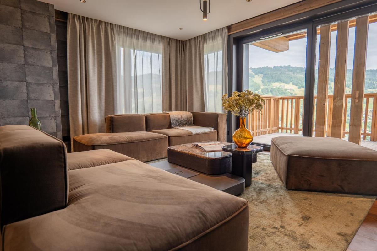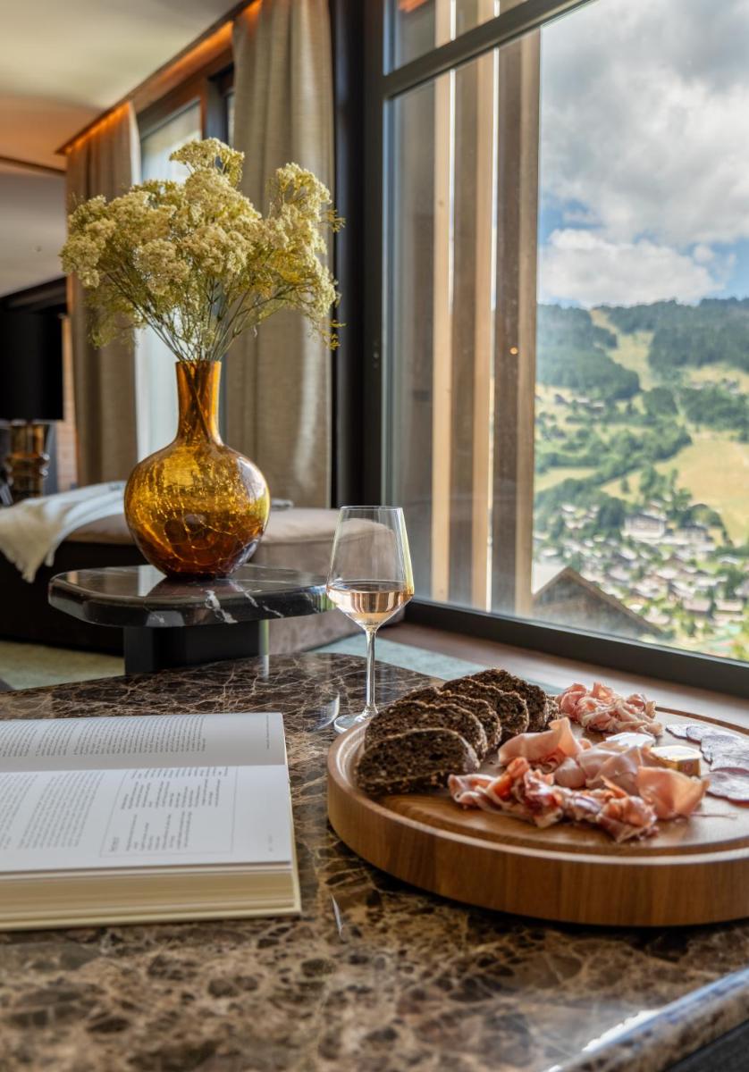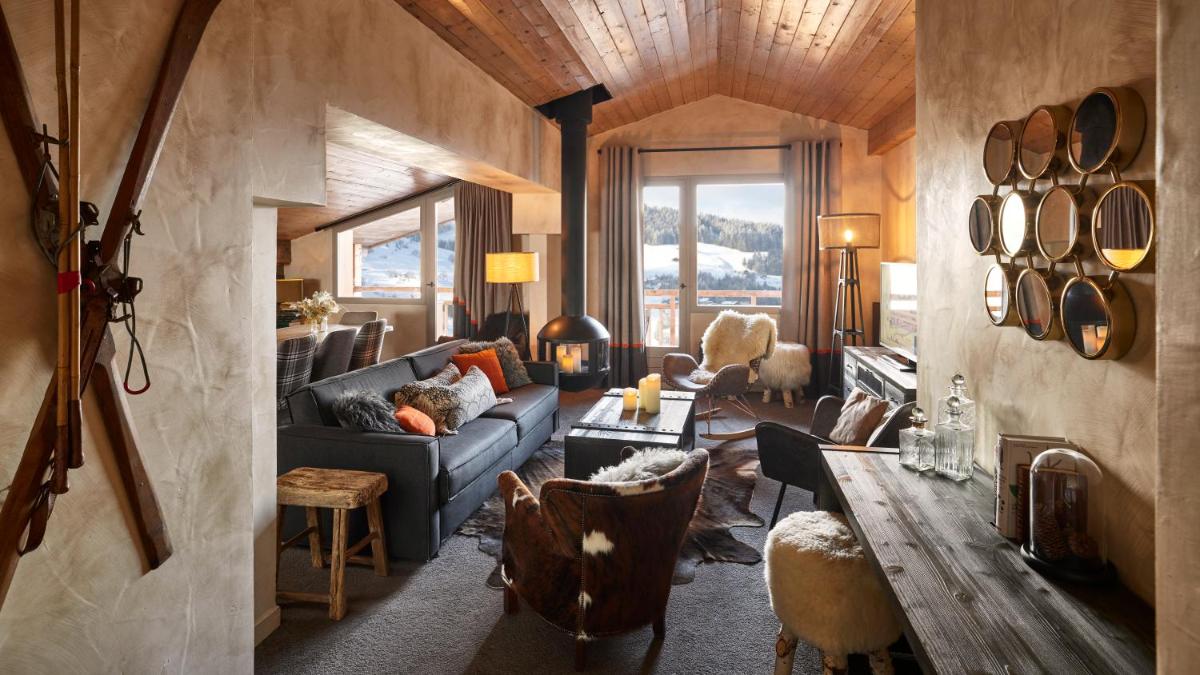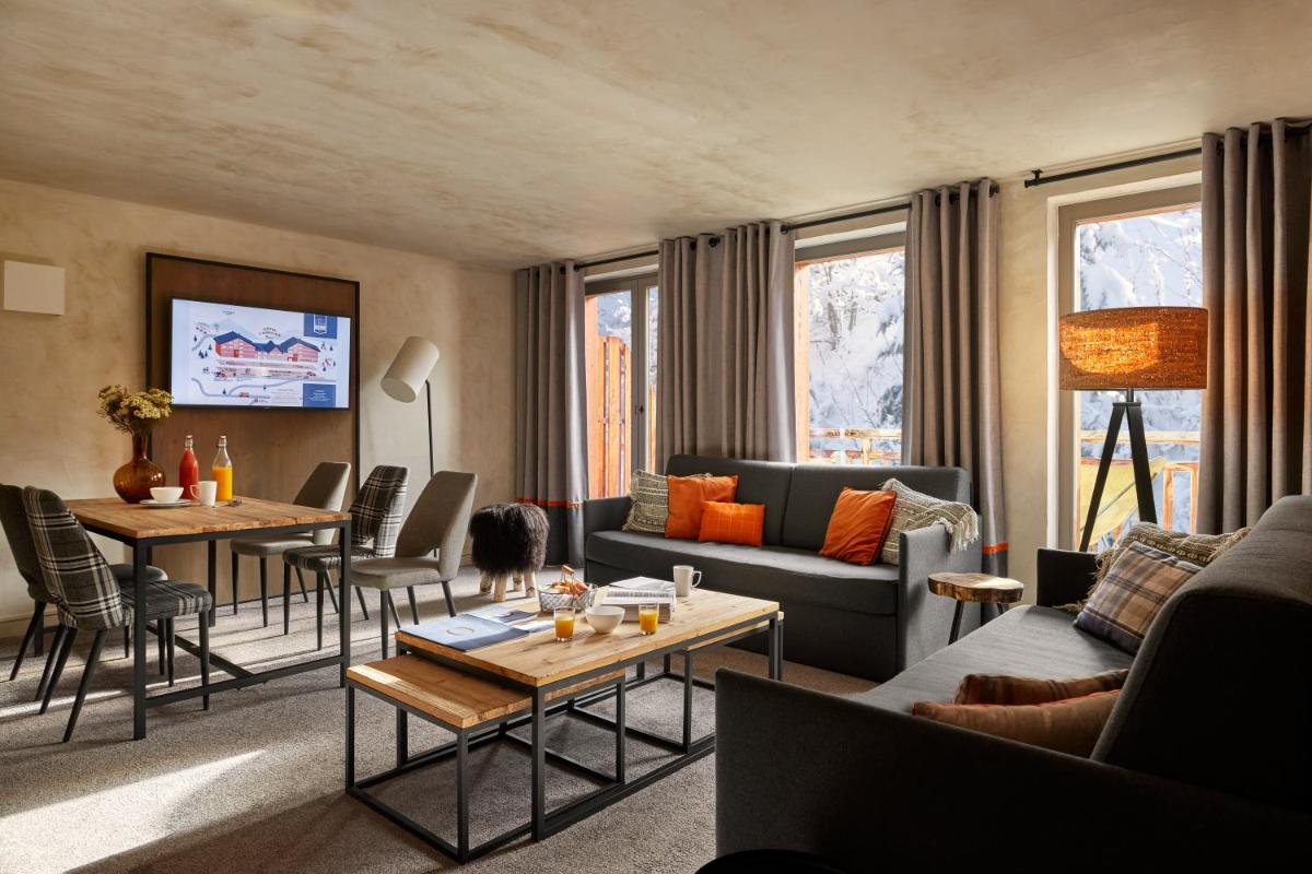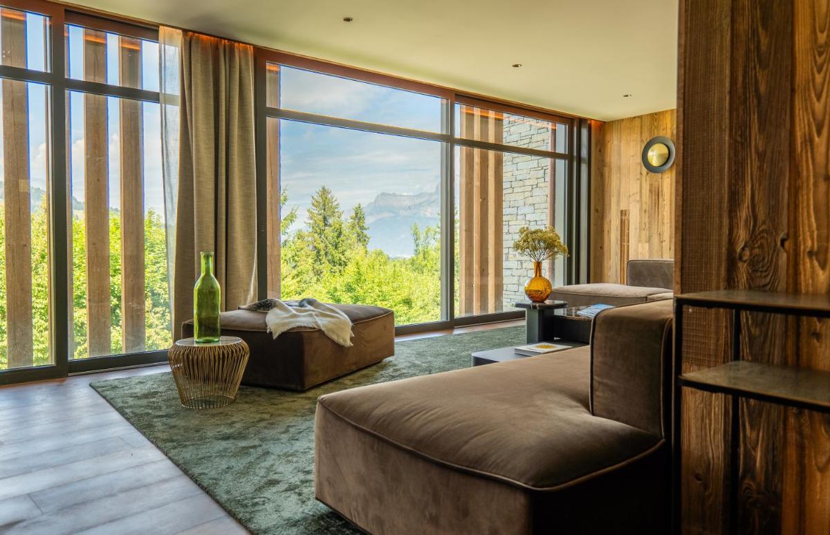 Das Hotel zeichnet sich durch seine Grand Chalet Stil-Architektur aus, deren Innenräume die Wärme alpinen Holzes mit einer zeitgemäßen und hellen Eleganz verschmelzen. Die Zimmer und Apartments (auch 'Appart hôtel' genannt) sind geräumig und gut ausgestattet, ideal für längere Familienaufenthalte, mit ausgestatteten Küchenzeilen und Balkonen mit spektakulärem Blick auf das Tal. Die Atmosphäre ist entspannt und sehr einladend.