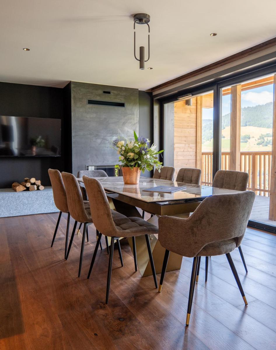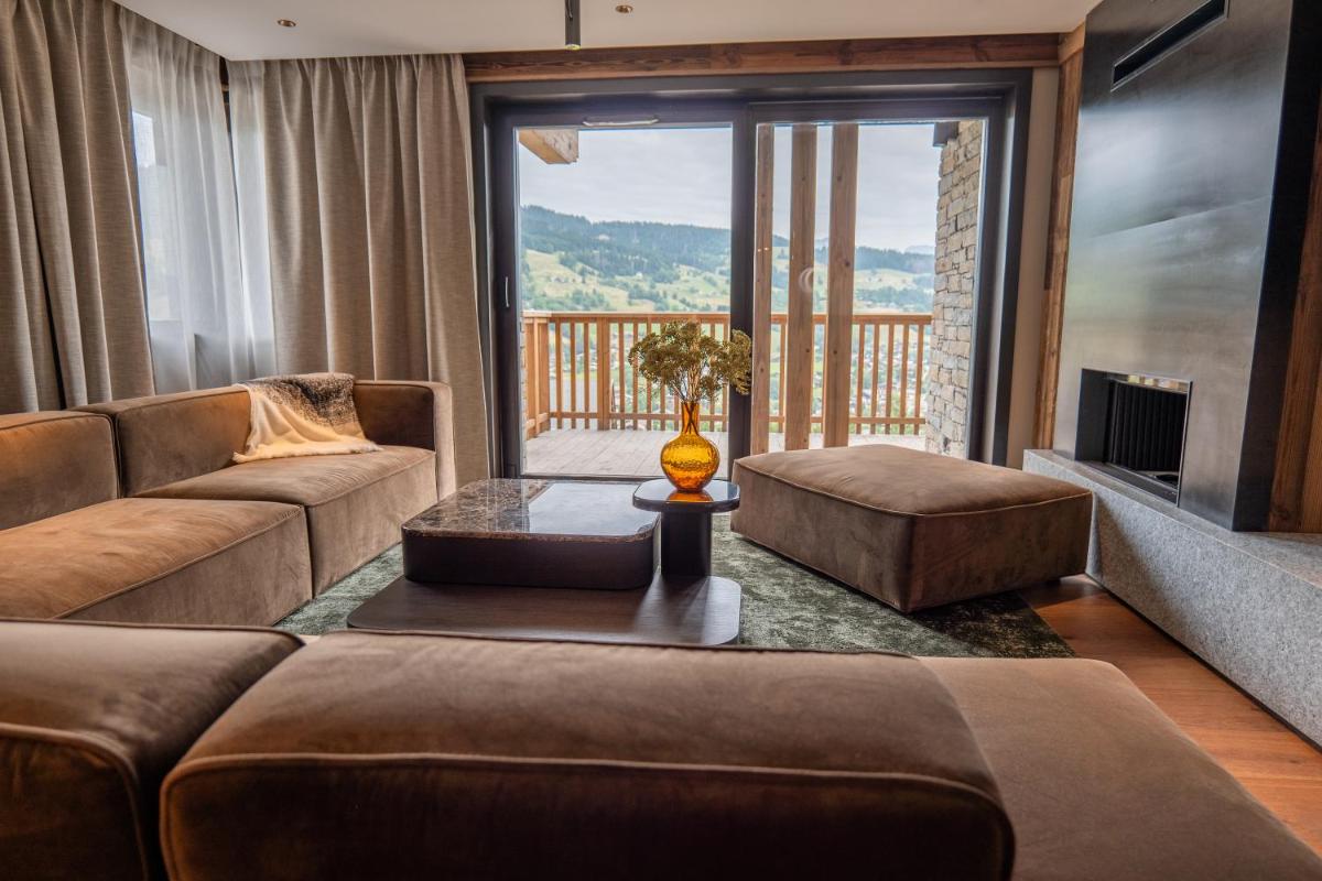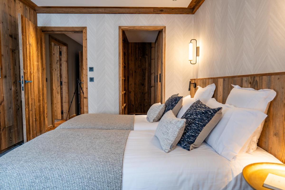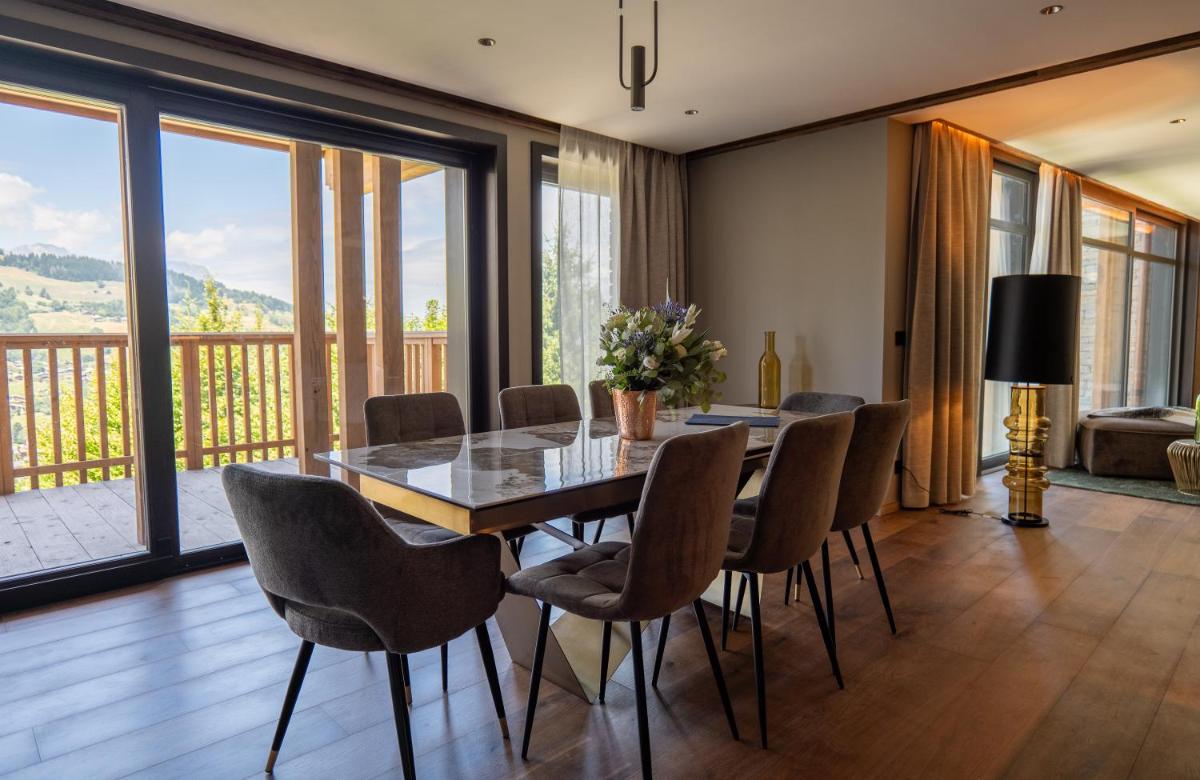 Das Hotel zeichnet sich durch seine Grand Chalet Stil-Architektur aus, deren Innenräume die Wärme alpinen Holzes mit einer zeitgemäßen und hellen Eleganz verschmelzen. Die Zimmer und Apartments (auch 'Appart hôtel' genannt) sind geräumig und gut ausgestattet, ideal für längere Familienaufenthalte, mit ausgestatteten Küchenzeilen und Balkonen mit spektakulärem Blick auf das Tal. Die Atmosphäre ist entspannt und sehr einladend.