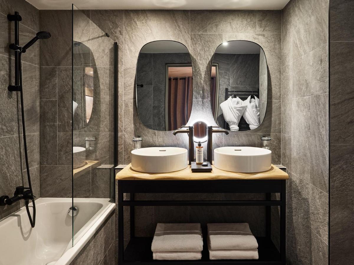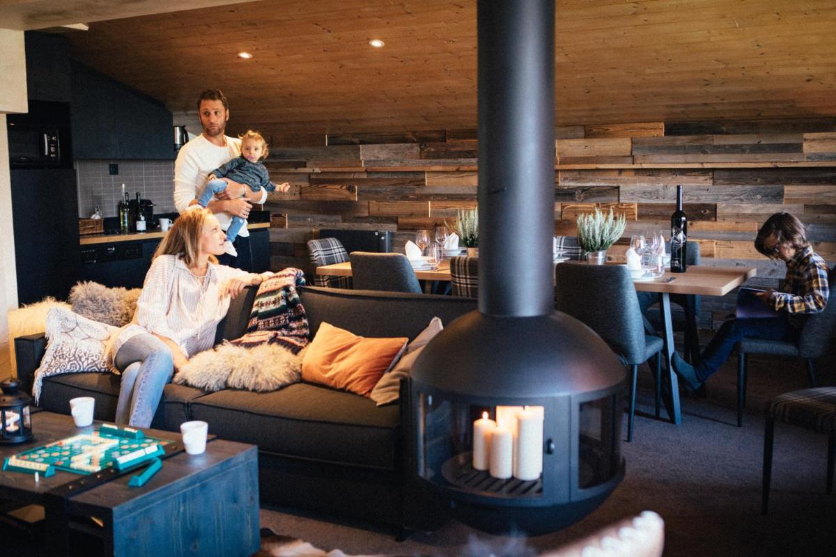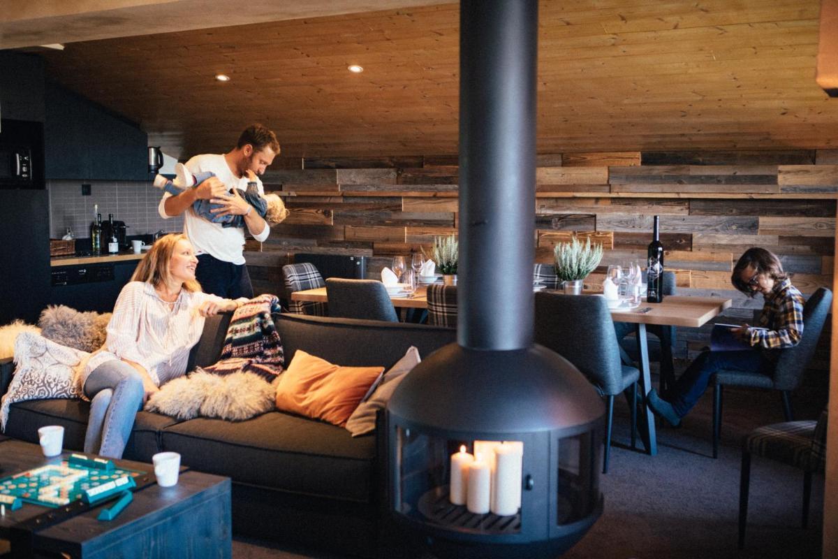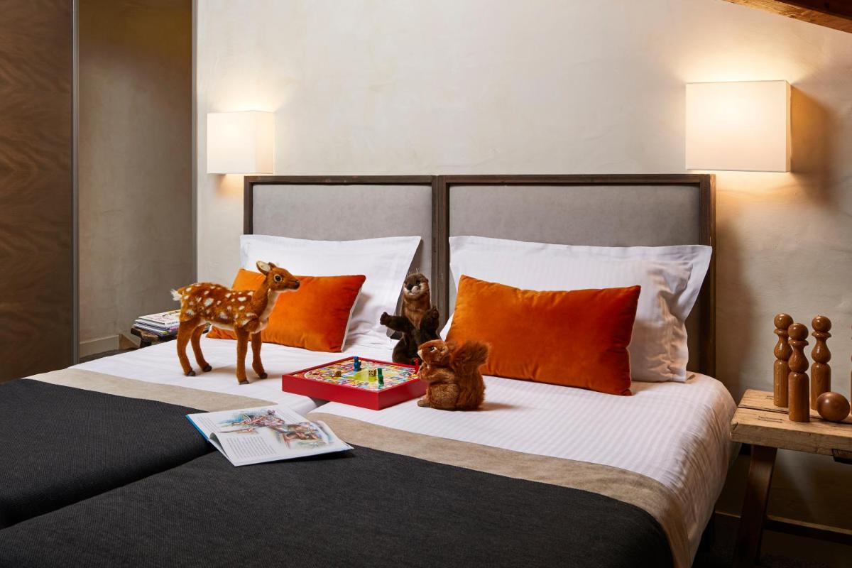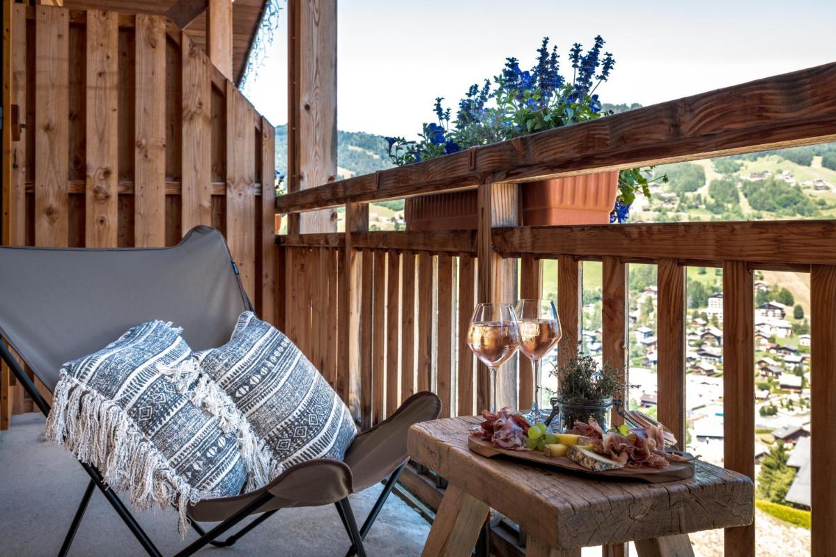 Das Hotel zeichnet sich durch seine Grand Chalet Stil-Architektur aus, deren Innenräume die Wärme alpinen Holzes mit einer zeitgemäßen und hellen Eleganz verschmelzen. Die Zimmer und Apartments (auch 'Appart hôtel' genannt) sind geräumig und gut ausgestattet, ideal für längere Familienaufenthalte, mit ausgestatteten Küchenzeilen und Balkonen mit spektakulärem Blick auf das Tal. Die Atmosphäre ist entspannt und sehr einladend.