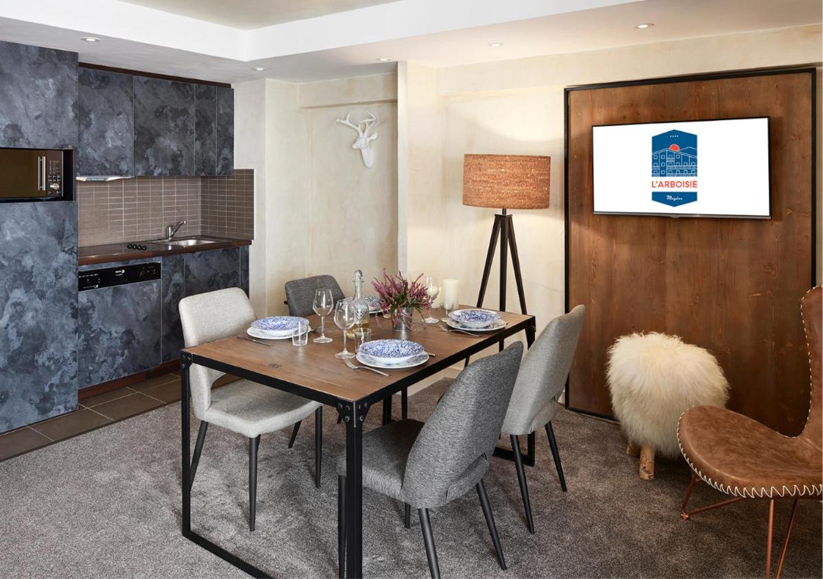 Das Highlight des L'Arboisie ist sein Wasser- und Wellnessbereich. Es verfügt über einen wunderschönen, ganzjährig zugänglichen beheizten Außenpool, der den Panoramablick überblickt, sowie einen Innenpool. Das Spa bietet ein Hammam, eine Sauna und eine Reihe von Körperbehandlungen und Ritualen, die ein Erlebnis der totalen Entspannung nach dem Skifahren oder Sommerwanderungen gewährleisten.
