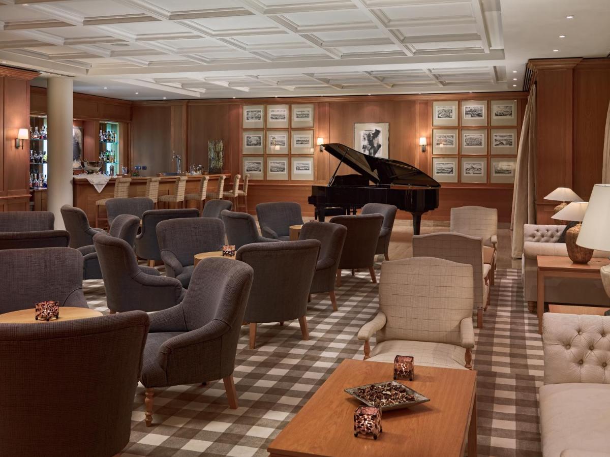 Die Inneneinrichtung zeichnet sich durch ihren klassischen und eleganten Stil aus, mit Zimmern und Suiten, die traditionellen Luxus bieten. Viele Zimmer genießen einen direkten Blick auf die makellosen Grüns des Golfplatzes, und die Suiten der höheren Kategorie umfassen zusätzliche Privilegien wie einen privaten Butler. Die Qualität der Materialien und die absolute Ruhe sind die Unterscheidungsmerkmale jeder Unterkunft.
