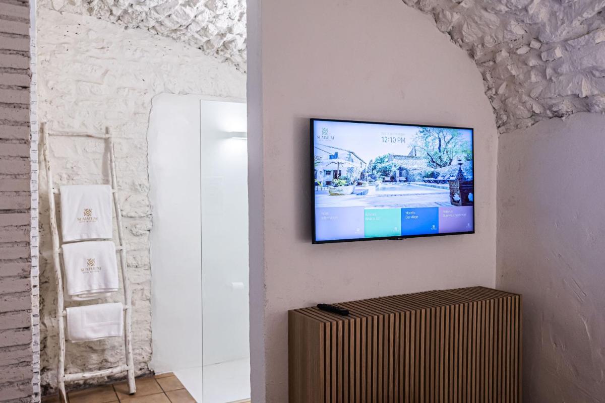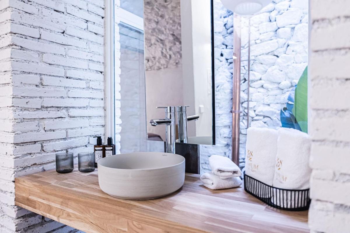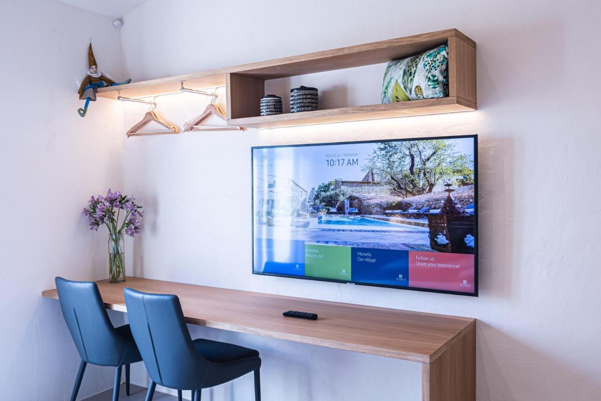 Trotz des zutiefst historischen Kontexts bietet das Hotel luxuriöse Annehmlichkeiten, darunter einen Entspannungsbereich und einen reizvollen, diskret in die Umgebung integrierten Außenpool. Die Terrasse und der Innenhof sind perfekte Orte, um die Stille des Dorfes und das mediterrane Klima zu genießen.