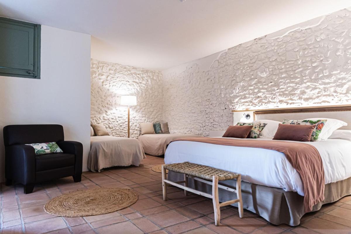 Die Zimmer und Suiten vereinen den rustikalen Charme der Steinmauern und der originalen Holzbalken mit modernem Komfort und anspruchsvollem Design. Jedes Detail ist darauf ausgerichtet, die traditionelle katalanische Architektur zu respektieren und einen Rückzugsort der Ruhe und Gelassenheit für einen erholsamen Schlaf zu gewährleisten.