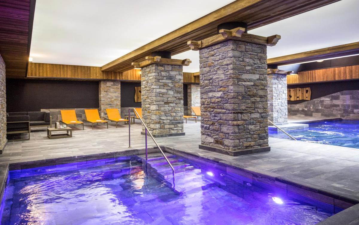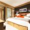 Das Hotel verfügt über 82 Zimmer und Suiten, die alle mit einem privaten Balkon ausgestattet sind, der einen spektakulären Blick entweder auf die Skipisten oder das Vanoise-Massiv bietet. Die Unterkünfte sind komfortabel und gut ausgestattet und garantieren nach einem Tag im Schnee einen warmen und gemütlichen Rückzugsort. Die Einrichtung ist im modernen Alpenstil gehalten, ergänzt durch diskrete luxuriöse Akzente für einen wahrhaft erholsamen Aufenthalt.