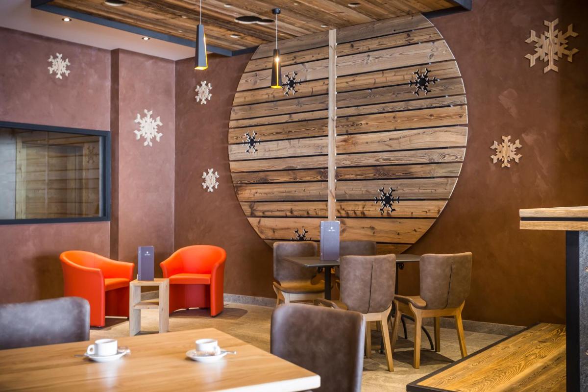 Das Hotelrestaurant bietet eine köstliche Küche, die Bergspezialitäten und savoyische Gerichte zelebriert und in einer einladenden Atmosphäre serviert wird. Ein großzügiges Frühstücksbuffet wird täglich angeboten. Die Anwesenheit einer Terrasse ermöglicht es den Gästen, die Sonne zu genießen und das Alpenpanorama zu bewundern, was Mahlzeiten oder einen einfachen Drink zu einem Moment des puren Vergnügens vor einer atemberaubenden Kulisse macht.