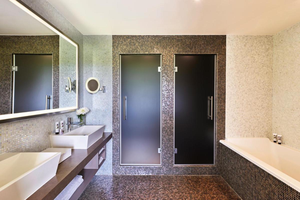 Das Design des Hotels ist modern und raffiniert, mit klaren Linien und großen Fenstern, die das natürliche Licht und den Blick auf die Weinberge maximieren. Die Zimmer und Suiten sind geräumig und mit allem Komfort ausgestattet, wodurch ein Rückzugsort moderner Eleganz im Herzen einer historischen Region entsteht.
