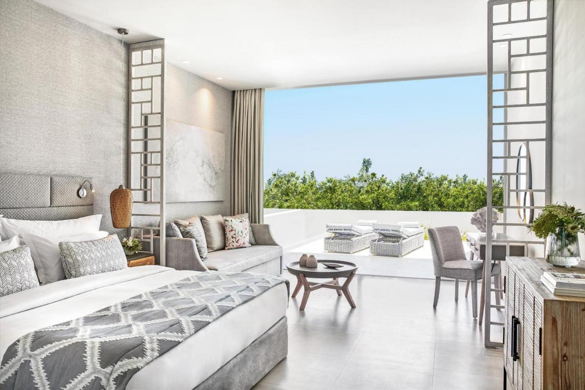 Das Resort bietet eine breite Palette an Zimmern, Suiten und Bungalows, die sich alle durch zeitgenössisches Design, elegante Möbel und private Balkone oder Gärten auszeichnen. Viele der Suiten bieten private Pools, die einen Rückzugsort des Luxus und der Privatsphäre gewährleisten. Das Design ist hell und luftig, im Einklang mit der Meeresumgebung, und umfasst alle Luxus-Annehmlichkeiten, die von einem Resort dieser Kategorie erwartet werden.