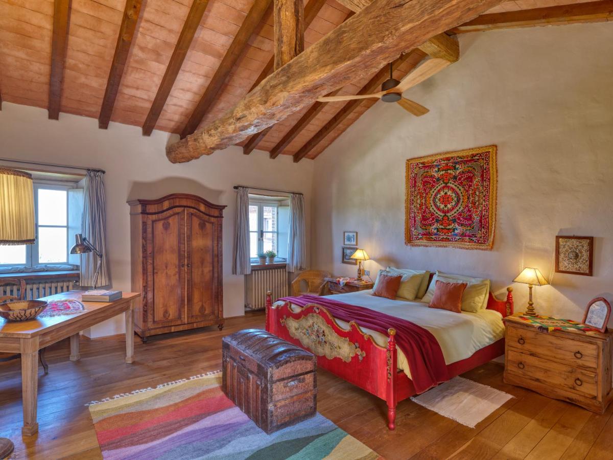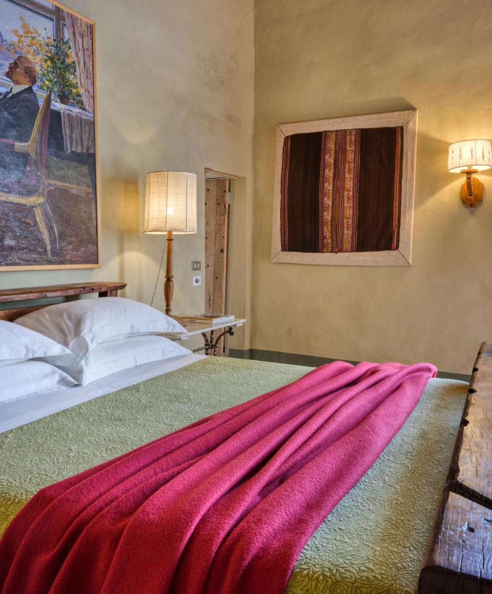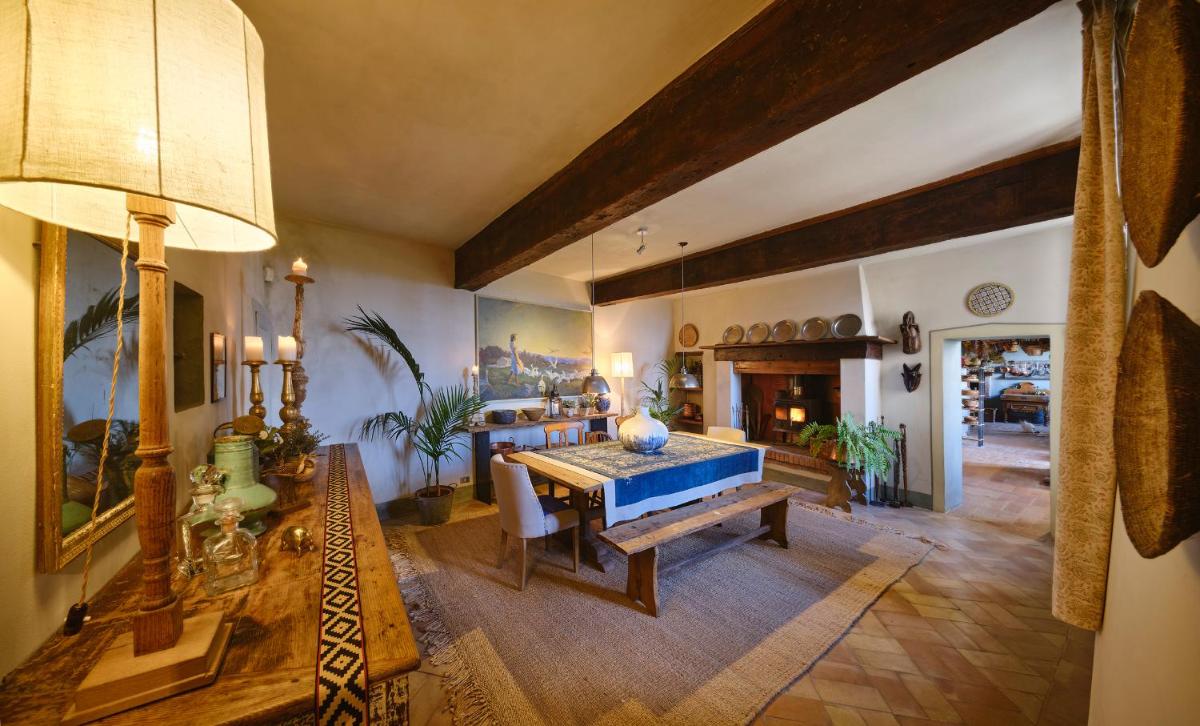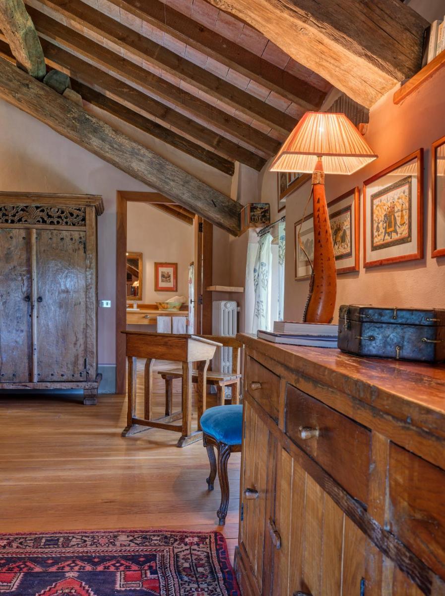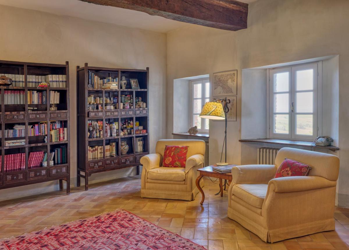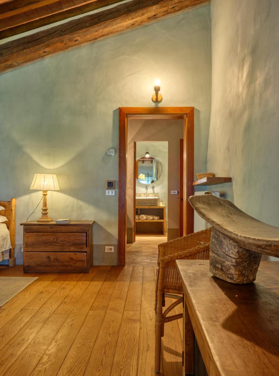 Das Castello verfügt über eine begrenzte Anzahl an Unterkünften (typischerweise 5 Zimmer und 2 Suiten, insgesamt 17 Gäste), was eine exklusive Atmosphäre gewährleistet. Die Zimmer und Suiten, individuell mit Geschmack und Raffinesse eingerichtet, kombinieren historische Details mit modernem Komfort. Alle Unterkünften sind geräumig, bieten Blick auf die umliegenden Hügel und sind mit Kostenlosem Wi-Fi und kostenlosen Wasserflaschen ausgestattet. Die Unterkunft konzentriert sich auf Entspannung und verzichtet auf invasive Technologien wie Fernseher im Zimmer (nur in Gemeinschaftsräumen auf Anfrage verfügbar).