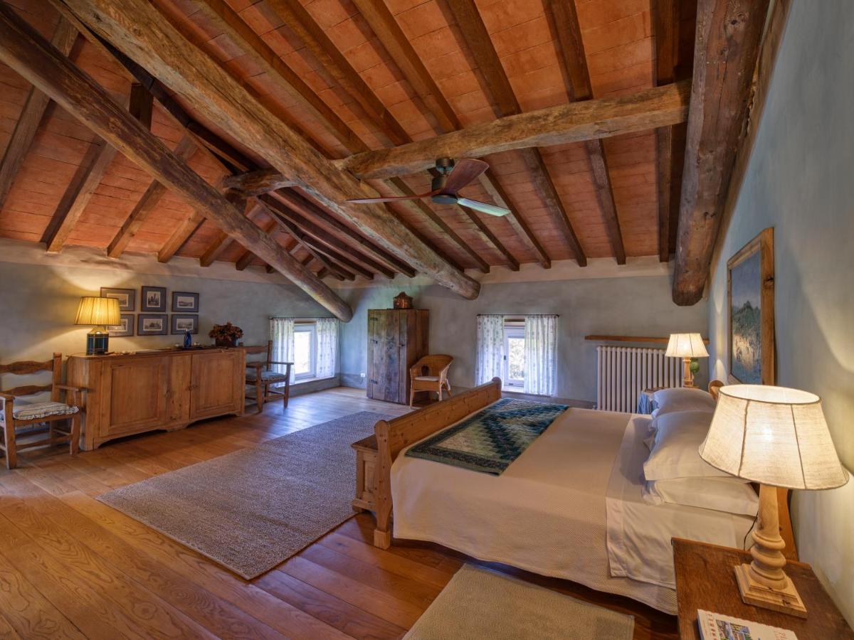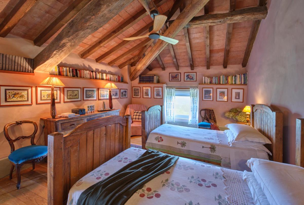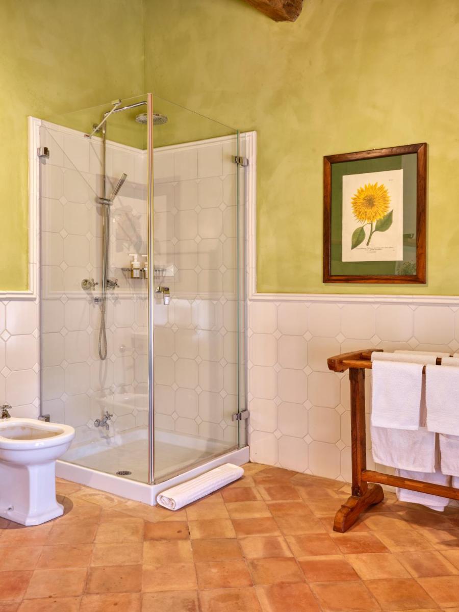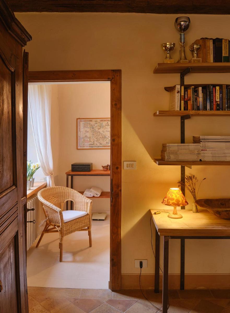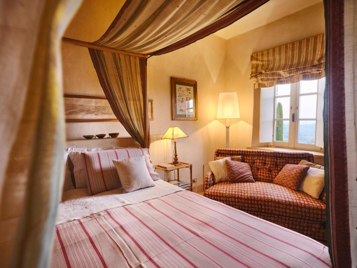 Das Castello verfügt über eine begrenzte Anzahl an Unterkünften (typischerweise 5 Zimmer und 2 Suiten, insgesamt 17 Gäste), was eine exklusive Atmosphäre gewährleistet. Die Zimmer und Suiten, individuell mit Geschmack und Raffinesse eingerichtet, kombinieren historische Details mit modernem Komfort. Alle Unterkünften sind geräumig, bieten Blick auf die umliegenden Hügel und sind mit Kostenlosem Wi-Fi und kostenlosen Wasserflaschen ausgestattet. Die Unterkunft konzentriert sich auf Entspannung und verzichtet auf invasive Technologien wie Fernseher im Zimmer (nur in Gemeinschaftsräumen auf Anfrage verfügbar).
