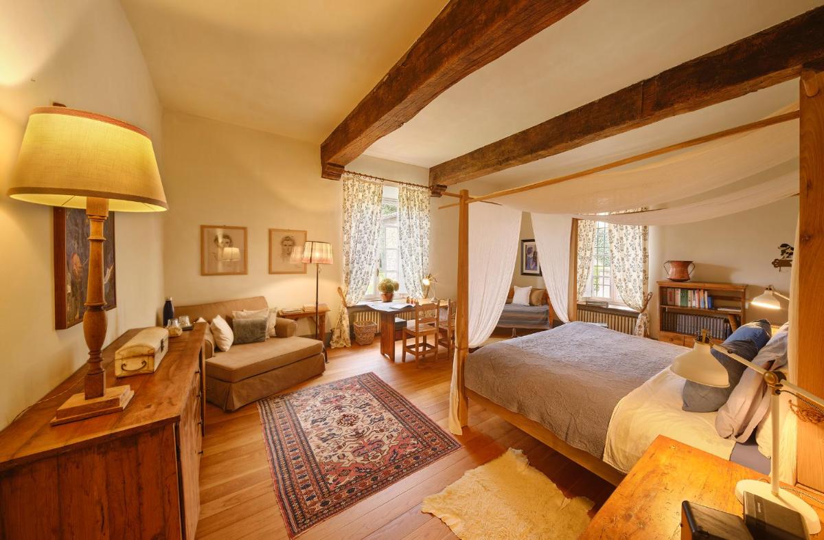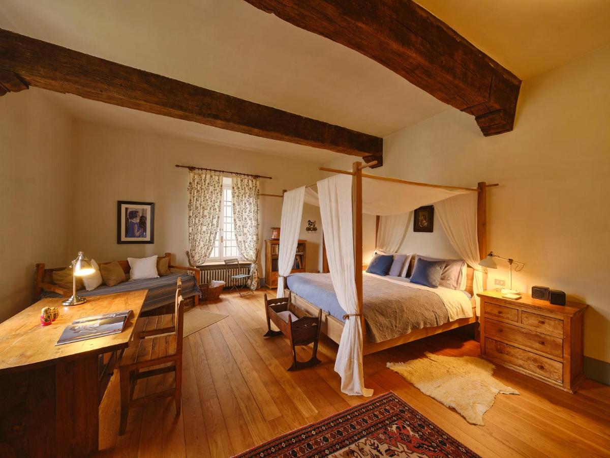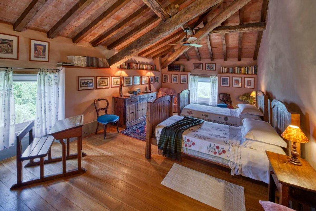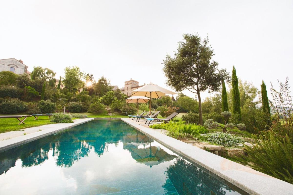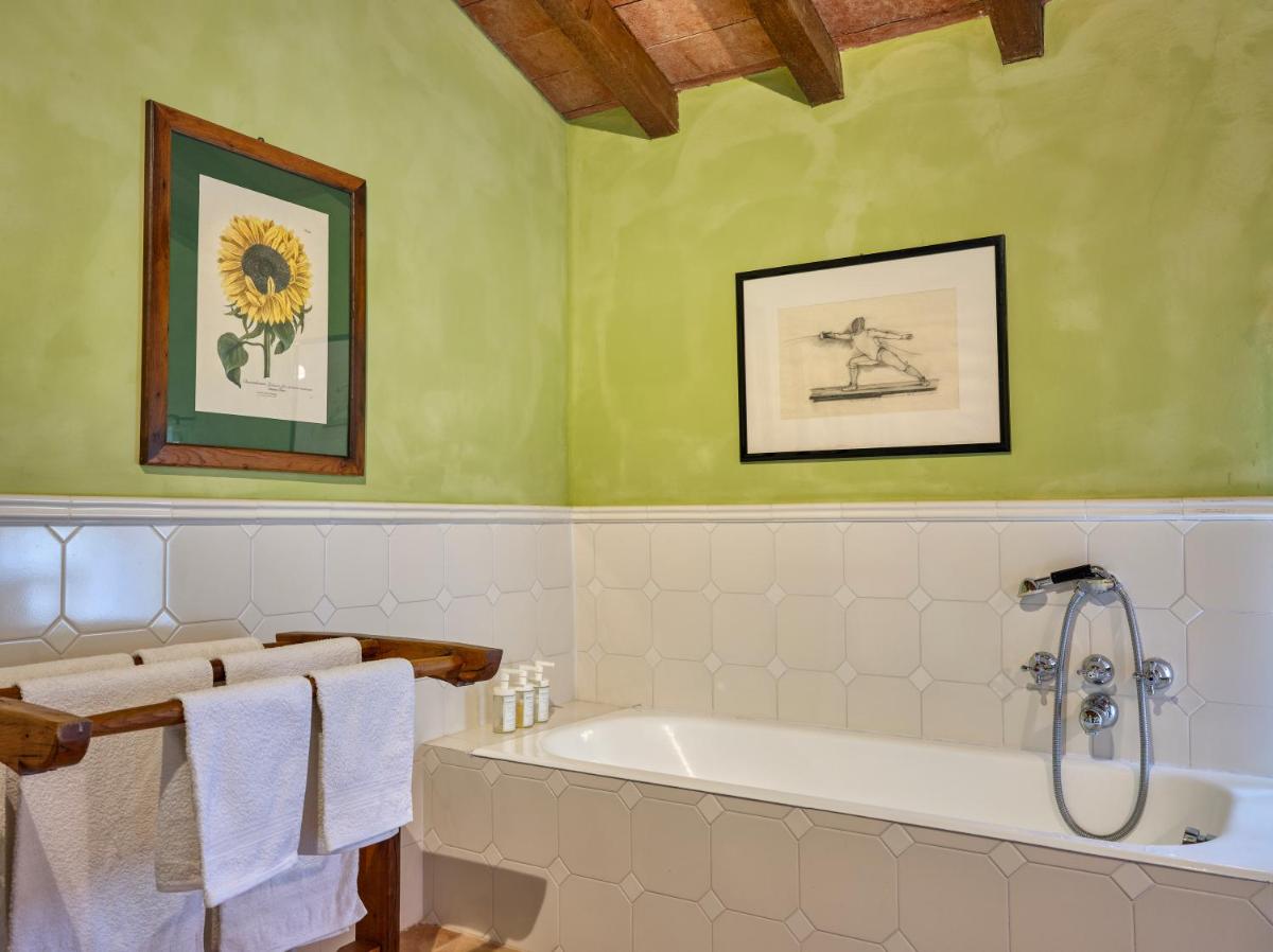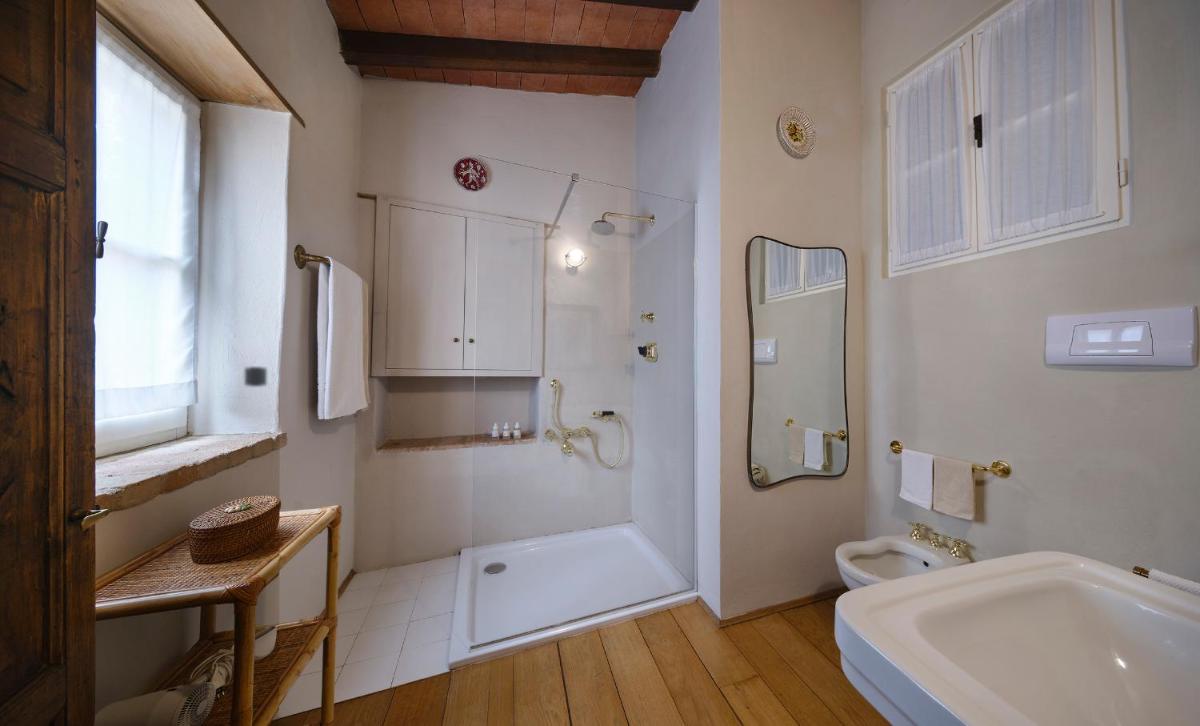 Das Castello verfügt über eine begrenzte Anzahl an Unterkünften (typischerweise 5 Zimmer und 2 Suiten, insgesamt 17 Gäste), was eine exklusive Atmosphäre gewährleistet. Die Zimmer und Suiten, individuell mit Geschmack und Raffinesse eingerichtet, kombinieren historische Details mit modernem Komfort. Alle Unterkünften sind geräumig, bieten Blick auf die umliegenden Hügel und sind mit Kostenlosem Wi-Fi und kostenlosen Wasserflaschen ausgestattet. Die Unterkunft konzentriert sich auf Entspannung und verzichtet auf invasive Technologien wie Fernseher im Zimmer (nur in Gemeinschaftsräumen auf Anfrage verfügbar).