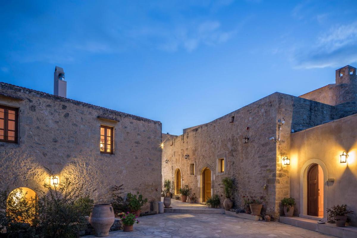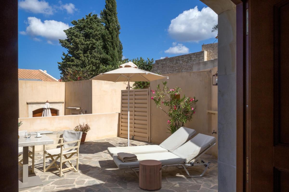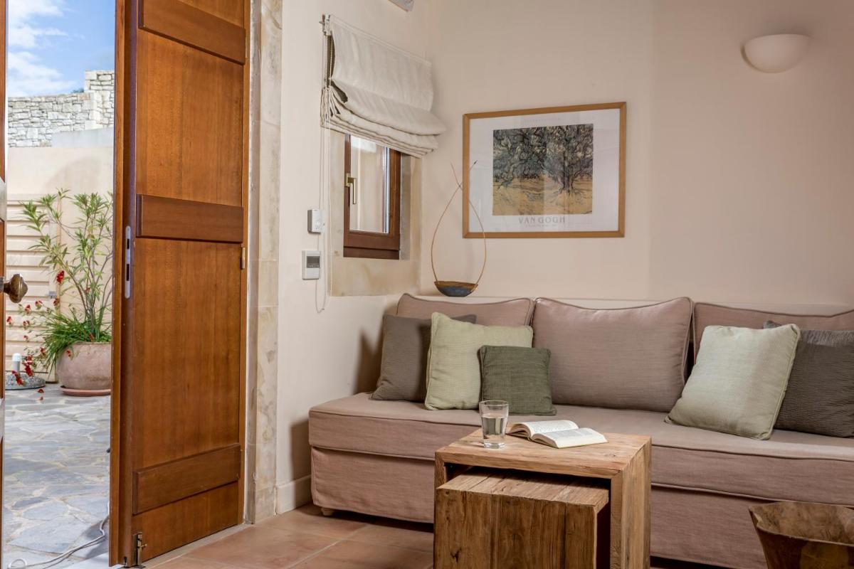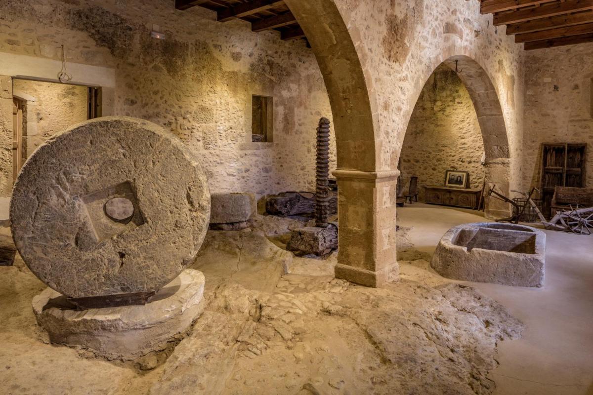 Ein Aufenthalt hier ist eine Zeitreise: Die alte Olivenpresse des Klosters ist heute ein Museum, das die Geschichte der Olivenölproduktion erzählt. Das Hotel bietet ein vollständiges Eintauchen in die kretische Kultur, kombiniert leichten Zugang zu den Sehenswürdigkeiten von Rethymno mit ländlicher Ruhe und dem Gefühl, in einer historischen und schwebenden Dimension zu leben.
