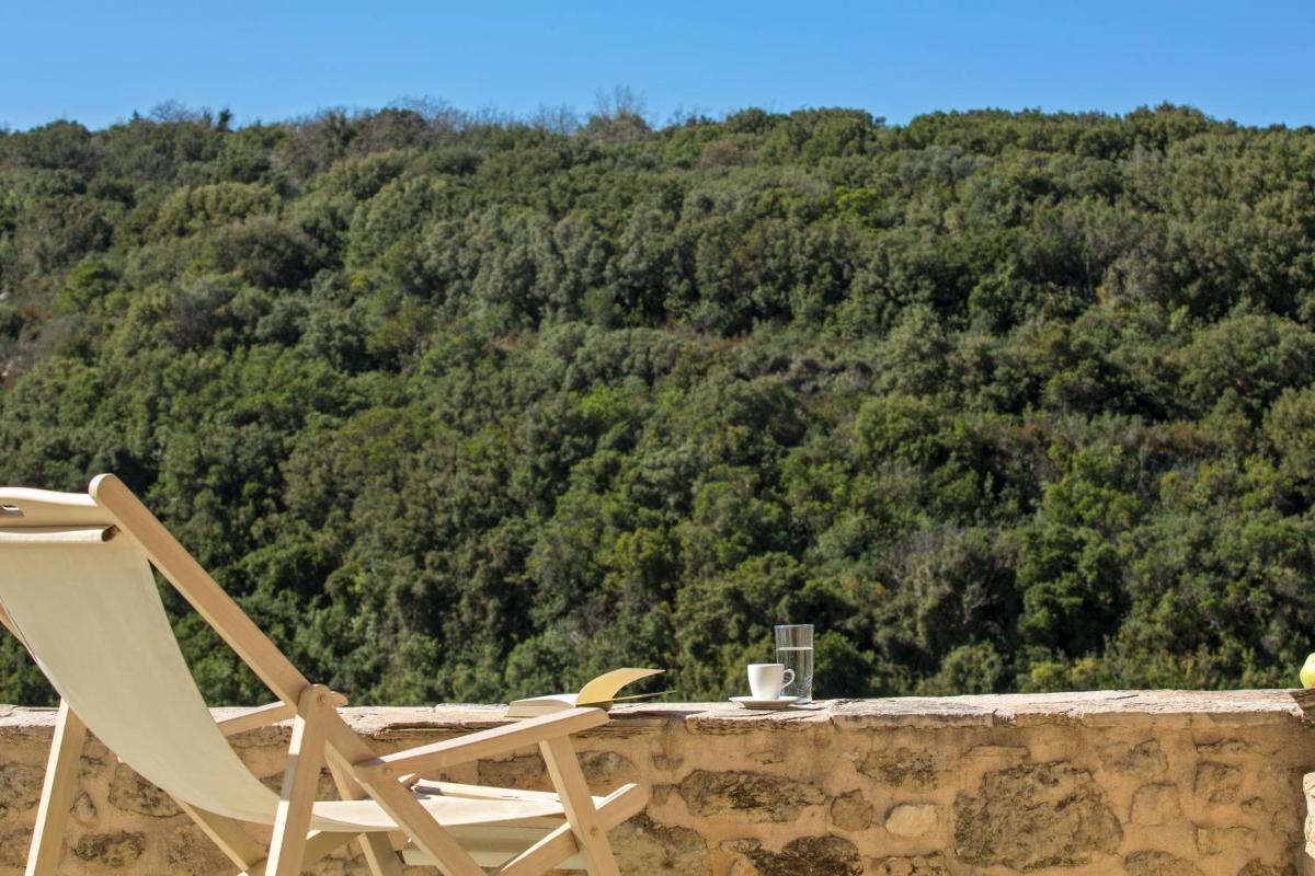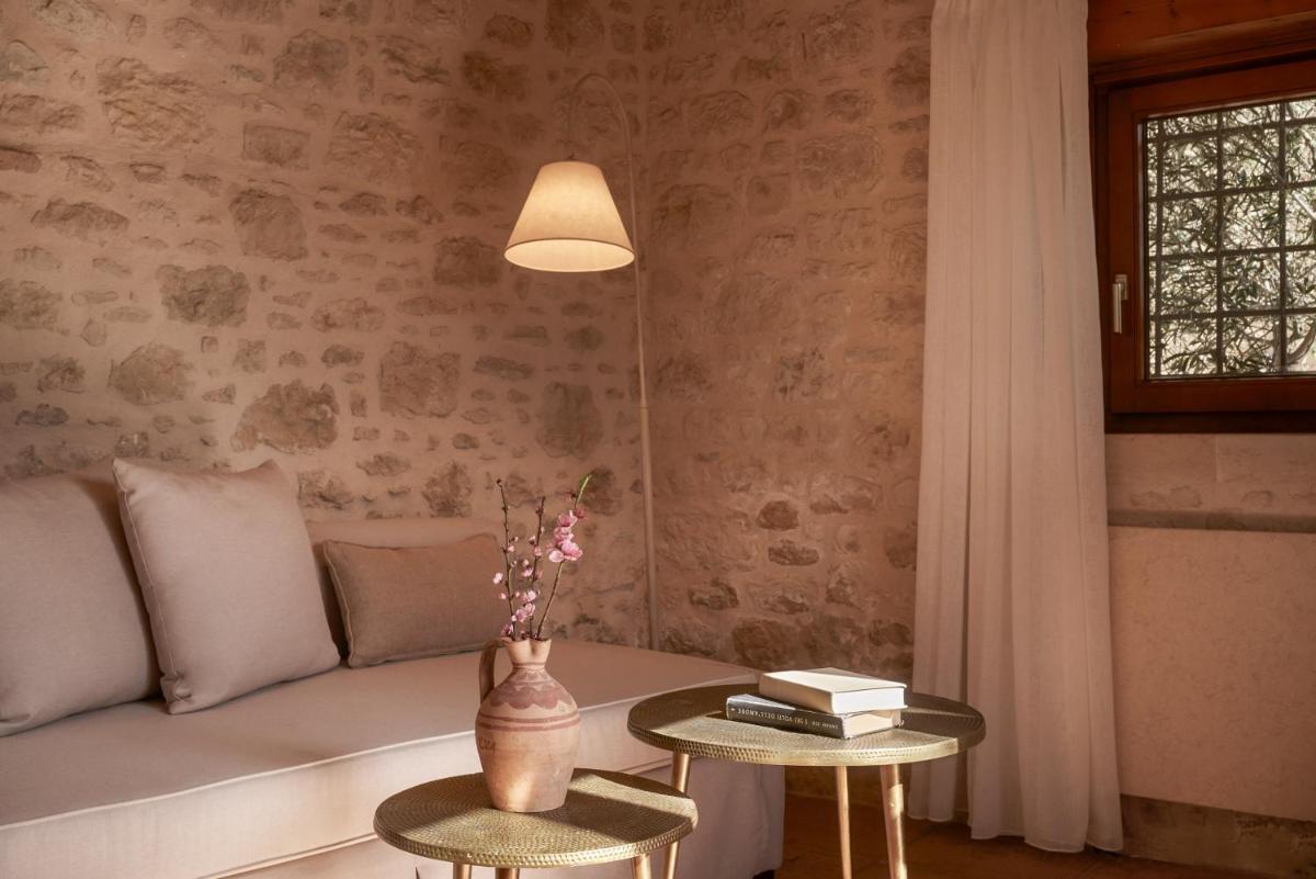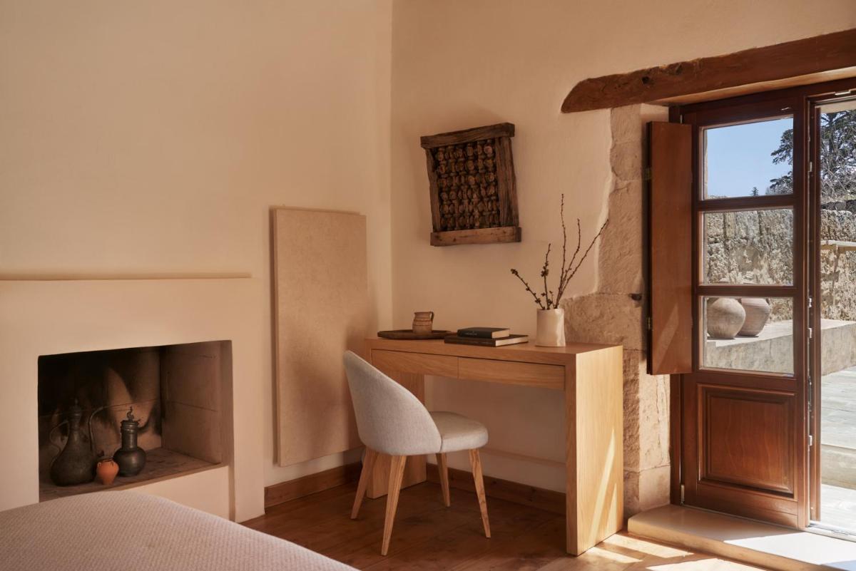 Das Hotel besteht aus alten Steinhäusern, die in luxuriöse Zimmer und Suiten umgewandelt wurden. Die Architektur bewahrt den ursprünglichen Charakter, mit freiliegenden Steinmauern, Kaminen und rustikalen Details, aber angereichert mit hochwertigem Komfort. Die Restaurierung war akribisch, bewahrte die Seele des Dorfes und schuf eine Atmosphäre ländlicher Eleganz.