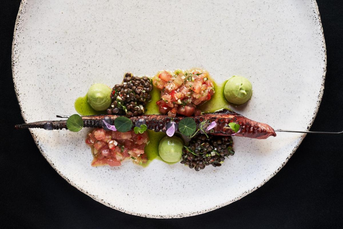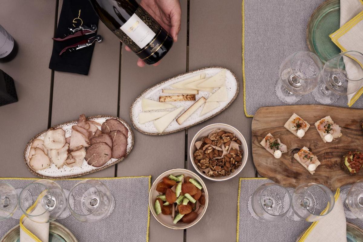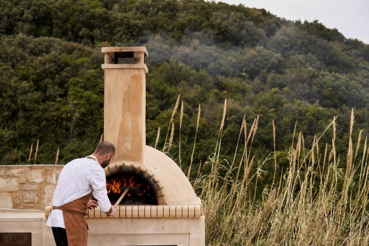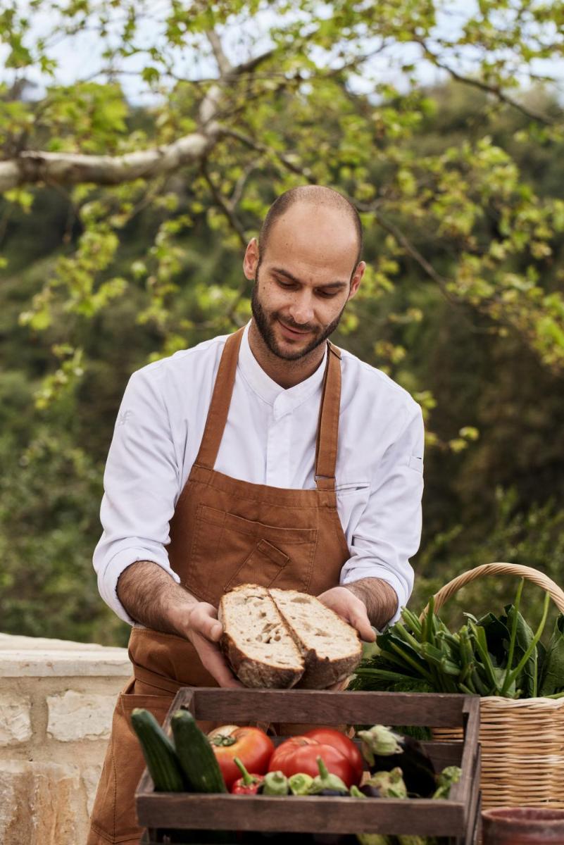 Die Küche ist ein fundamentaler Pfeiler des Erlebnisses. Das Restaurant serviert authentische kretische und mediterrane Gerichte, mit starkem Akzent auf lokalen Produkten, von denen viele auf dem Gut angebaut werden. Das Olivenöl des Klosters, das vor Ort produziert wird, ist die Zutat der Ehre und garantiert intensive und unverfälschte Aromen.