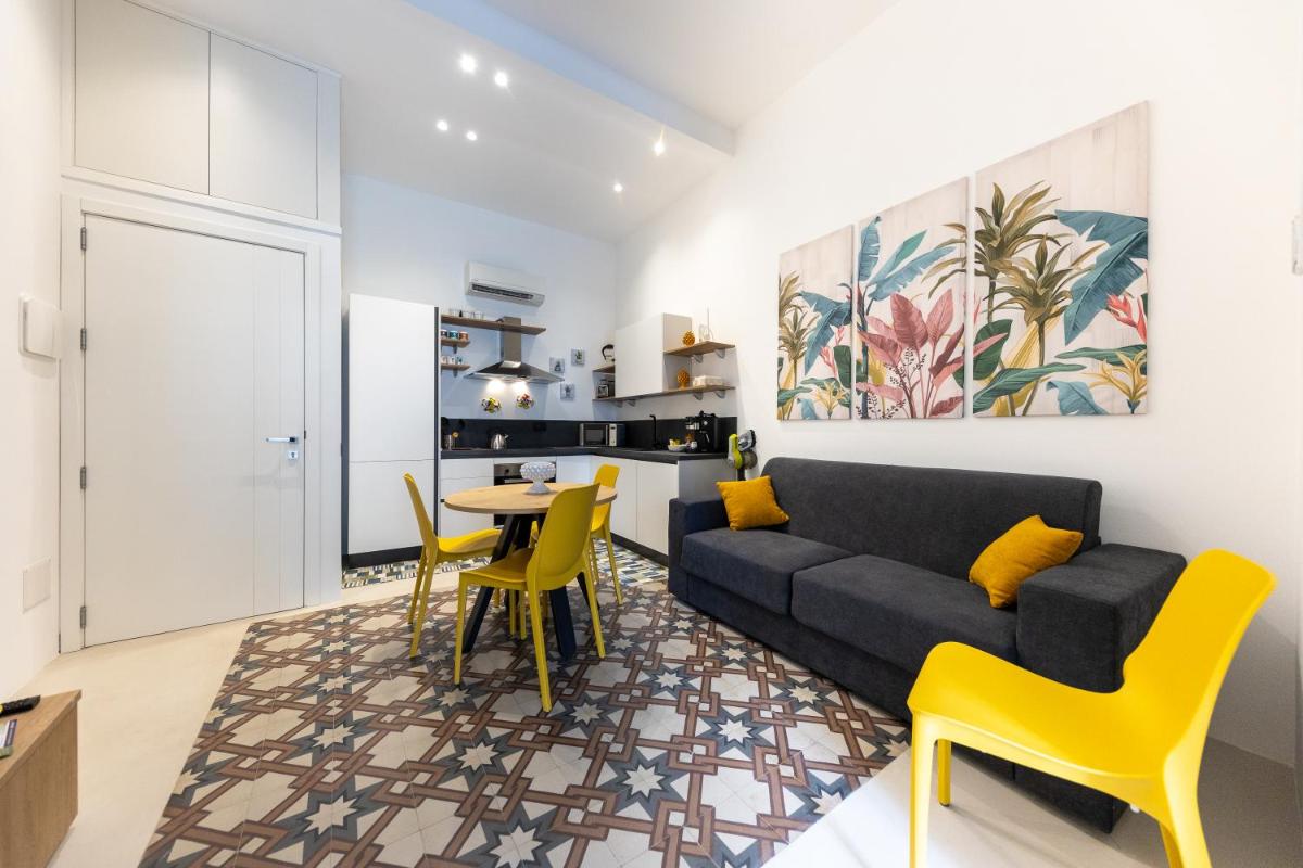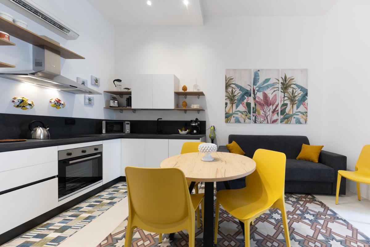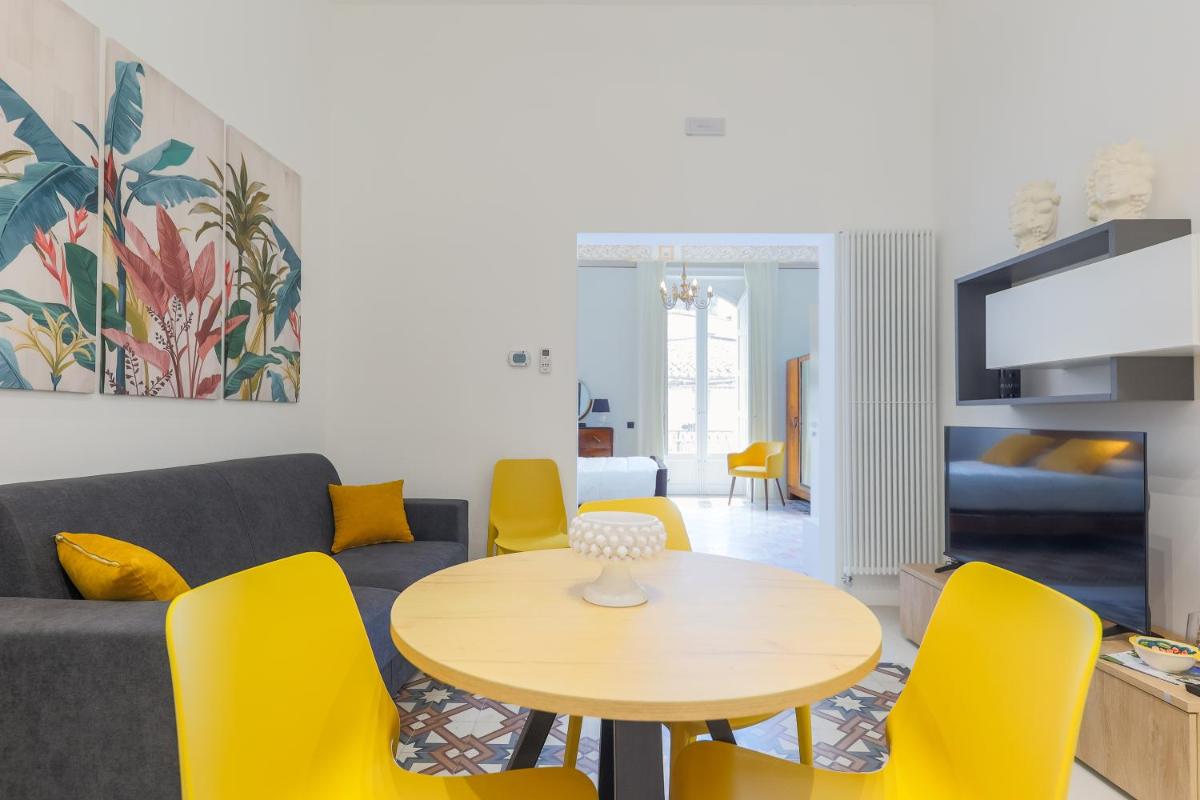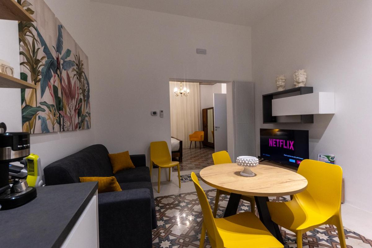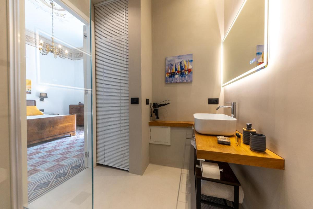 Das Innendesign ist eine geschickte Mischung aus historischer sizilianischer Architektur (wie freiliegende Balken und Majolika-Böden) und moderner, raffinierter Einrichtung. Die Suiten sind geräumig und hell, darauf ausgelegt, hochwertigen Komfort zu bieten und den Gästen nach Tagen der Erkundung einen ruhigen Rückzugsort zu garantieren.