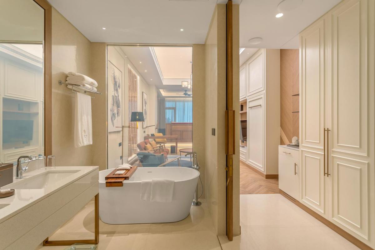 Die Unterkünfte sind in einem modernen und raffinierten Stil gestaltet, viele davon bieten private Balkone mit direktem Meerblick. Die exklusiven Villen gewährleisten maximale Privatsphäre mit separaten Wohnbereichen und privilegiertem Zugang zum Strand, ideal für Familien oder Paare, die diskreten Luxus suchen.