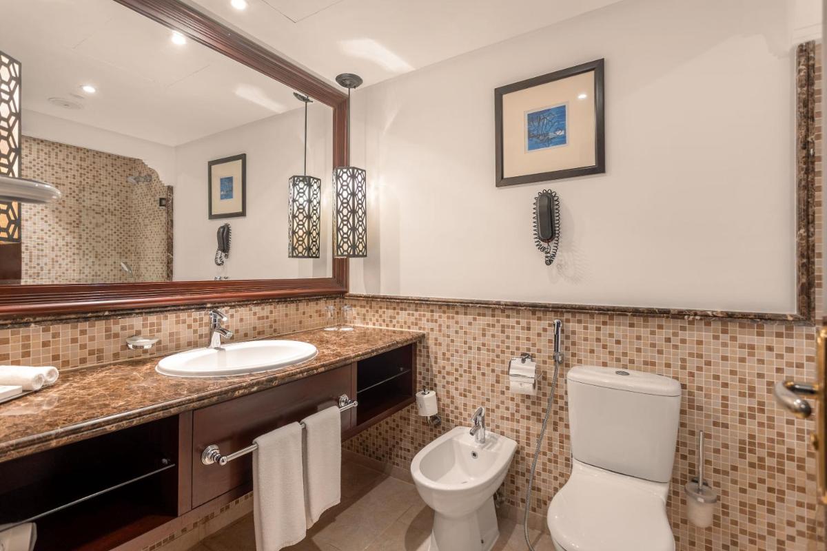Diese nach einem traditionellen arabischen Thema gestalteten 53 m² großen Suiten bieten viel Platz, eigene Balkone und Marmorbäder mit einer ebenerdigen gläsernen Duschkabine und einer separaten Badewanne.