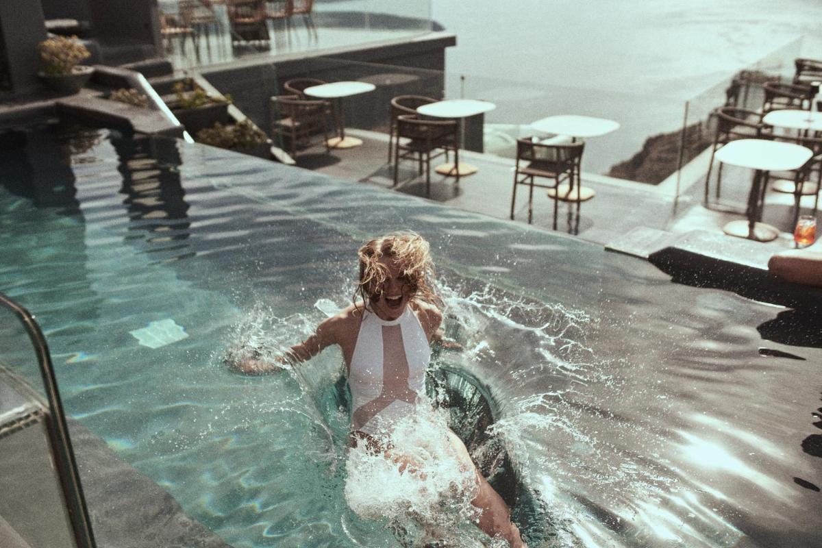 Jedes Zimmer, jede Suite und jede Villa ist ein Meisterwerk an Komfort und Technologie. Die Unterkünfte sind mit luxuriösen Annehmlichkeiten wie Regenduschen, Bluetooth-Lautsprechern und einem innovativen Farbwechsel-Beleuchtungssystem ausgestattet, das es Gästen ermöglicht, das Ambiente anzupassen. Der wahre Luxus ist das Vorhandensein eines privaten Infinity-Tauchbeckens, eines 'Höhlenpools' oder eines privaten Whirlpools in fast allen Einheiten, alle mit Blick auf die Caldera.