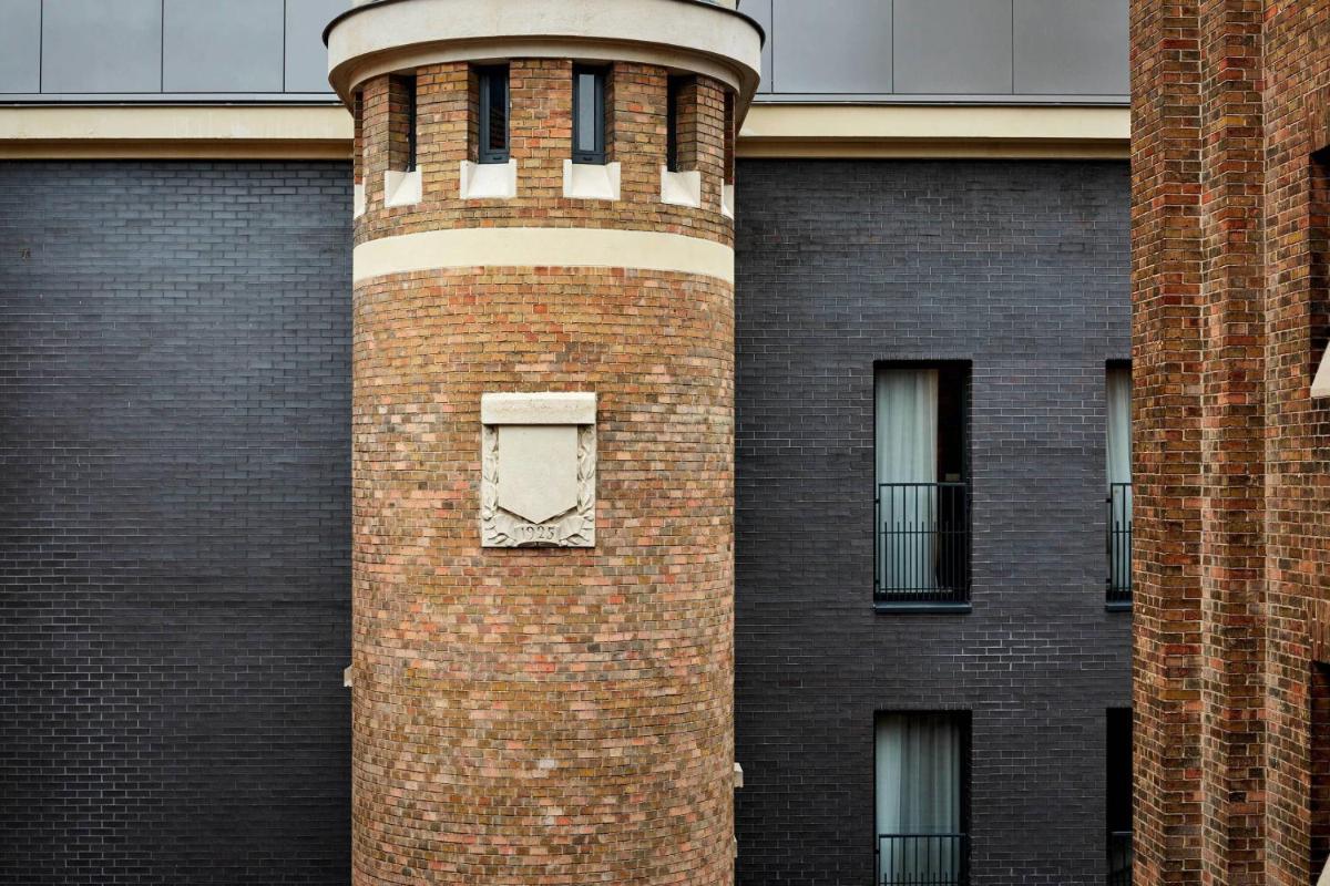 Das Innendesign bewahrt ursprüngliche architektonische Elemente, wie die großen Öffnungen und die industrielle Struktur, interpretiert sie jedoch elegant und zeitgenössisch neu. Die Zimmer und Suiten sind raffiniert, mit maßgefertigten Möbeln und großen Fenstern, die den Blick auf die Kathedrale einrahmen. Das Kasernen-Thema wird subtil durch Designdetails aufgegriffen und schafft eine Atmosphäre von diskret luxuriöser Gastfreundschaft und einem starken Gefühl für den Ort.