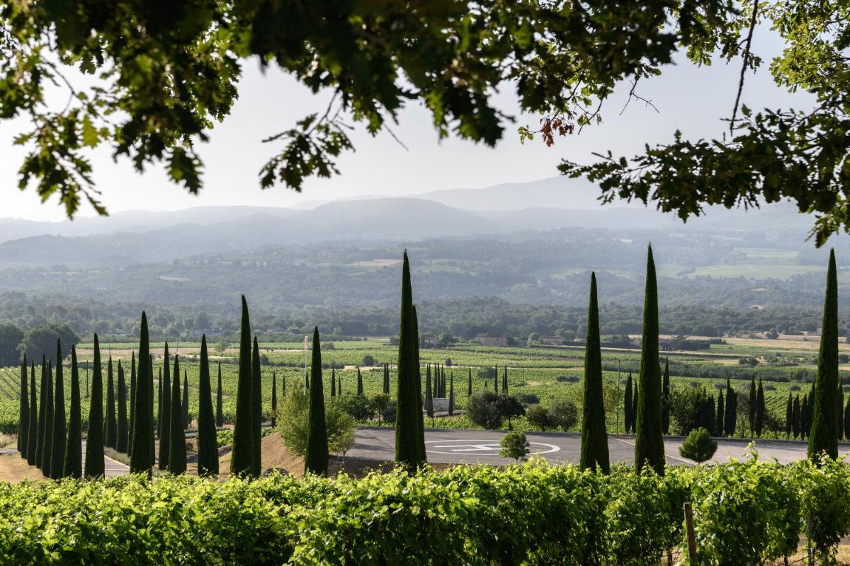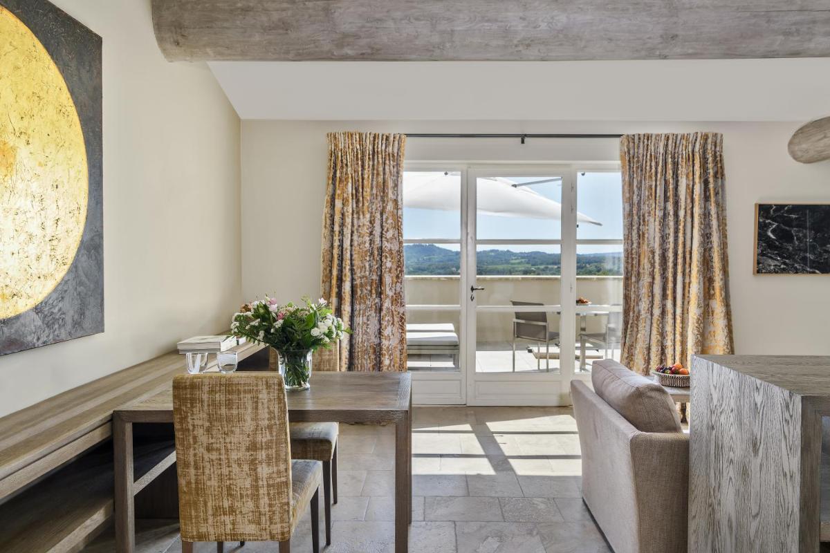 Das Resort bietet verschiedene gastronomische Optionen, vom informellen Bistro bis zum Gourmetrestaurant. Die Küche ist eine Hommage an die Provence, mit einem Fokus auf lokale und saisonale Produkte, die oft in den Gärten des Anwesens angebaut werden. Der Weinkeller ist ein Exzellenzpunkt, mit den Weinen des Guts und einer Auswahl regionaler Etiketten.