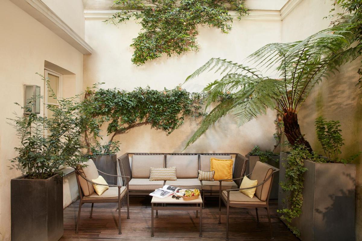 Die 59 Zimmer und Suiten wurden von renommierten Innenarchitekten entworfen, mit besonderem Augenmerk auf die Verwendung intensiver Farben, prächtiger Stoffe und Avantgarde-Design, das eine einzigartige Atmosphäre schafft. Das Ambiente ist anspruchsvoll und dennoch einladend und gewährleistet einen Aufenthalt mit maximalem Komfort und Diskretion. Jedes Detail ist gepflegt, um personalisierten und maßgeschneiderten Luxus widerzuspiegeln.