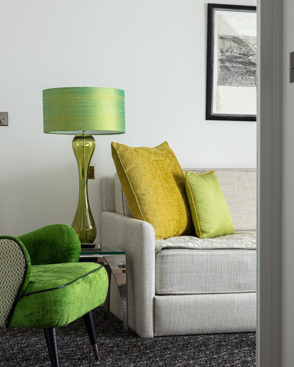 Diese geräumige Suite verfügt über ein elegantes Dekor, einen separaten Wohnbereich und ein Schlafzimmer. Das eigene Bad ist mit einer Dusche und einer Badewanne ausgestattet.