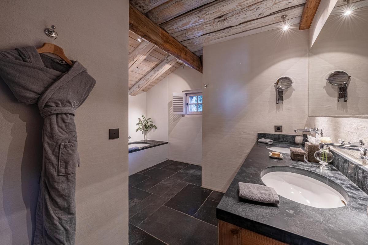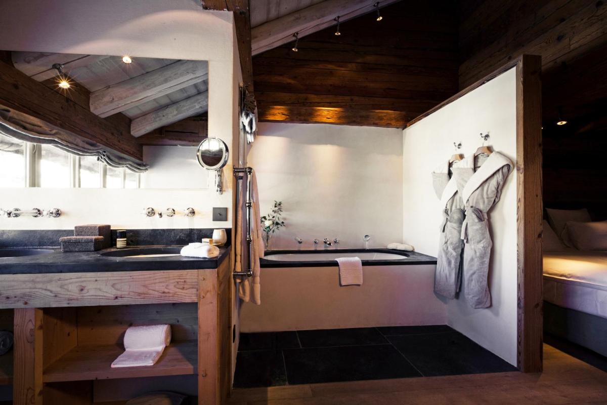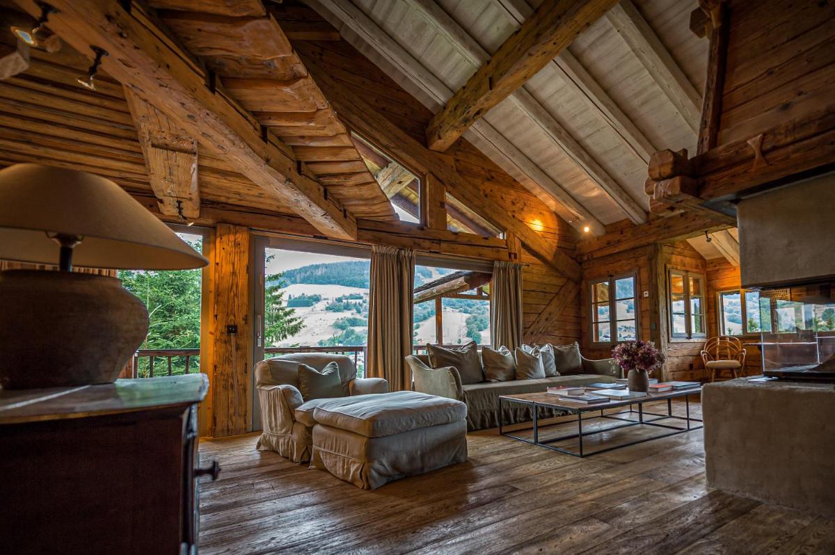 This is the largest suite available at Le Chalet. From the balcony guests can enjoy views of the surrounding mountains and Megève.