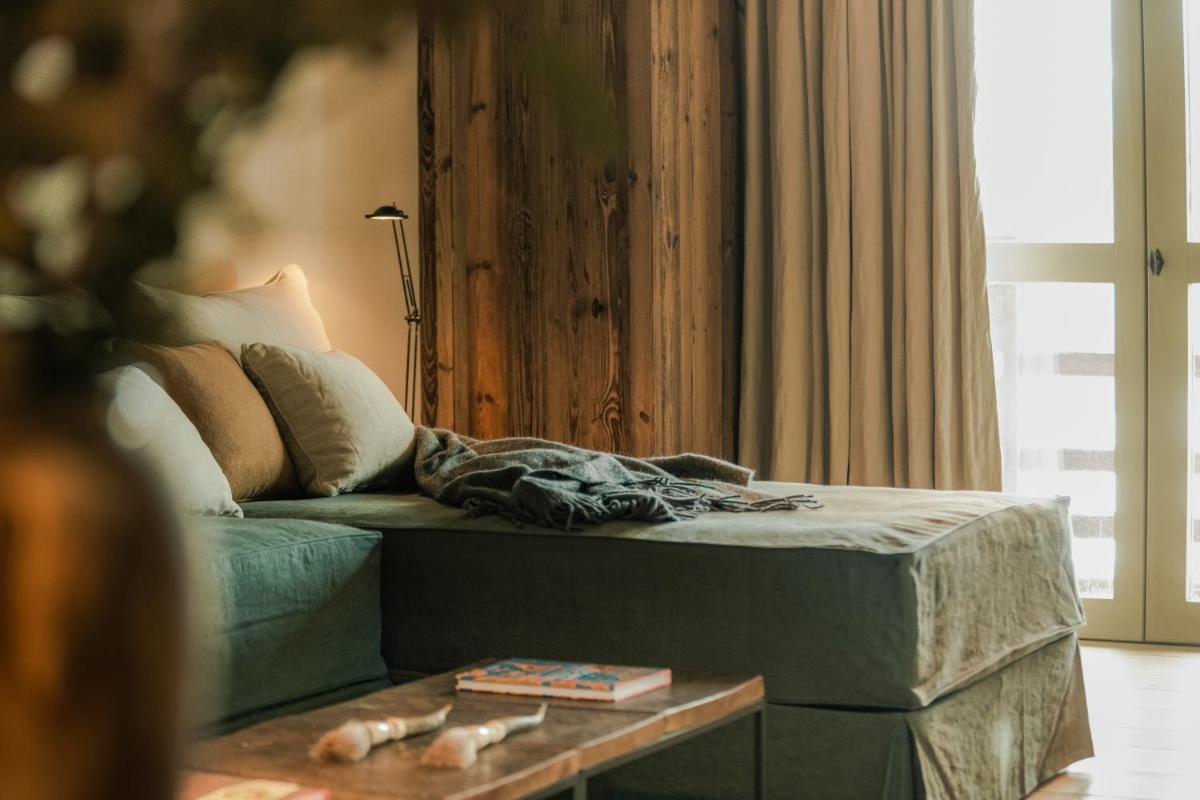 Das Design ist das Markenzeichen von Zannier: minimalistisch, mit einem Fokus auf alpine Authentizität, unter Verwendung von altem Holz, Wolle und rohen Materialien. Die Einrichtung ist mit Antiquitäten und edlen Stoffen kuratiert, was eine unglaublich warme und raffinierte rustikal-schicke Atmosphäre schafft. Die Zimmer sind als private Nester konzipiert.