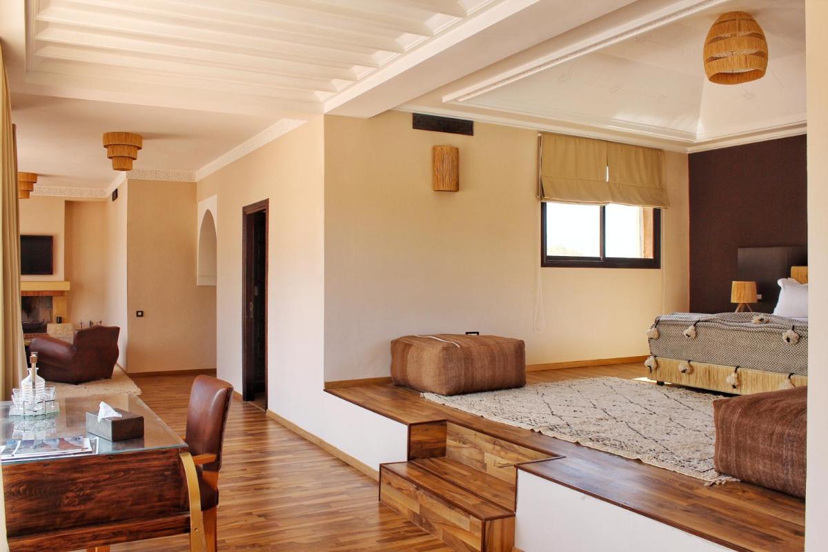 Die Anlage zeichnet sich durch ihre Unterkünfte in privaten Villen aus, jede mit beheiztem Pool oder Whirlpool und Panoramaterrassen. Die Innenräume sind mit lokalen Materialien, darunter Holz und Tadelakt, ausgestattet, was eine intime und anspruchsvolle Atmosphäre schafft. Jede Villa ist ein Refugium des Komforts und der Privatsphäre mit persönlichem und diskretem Service.