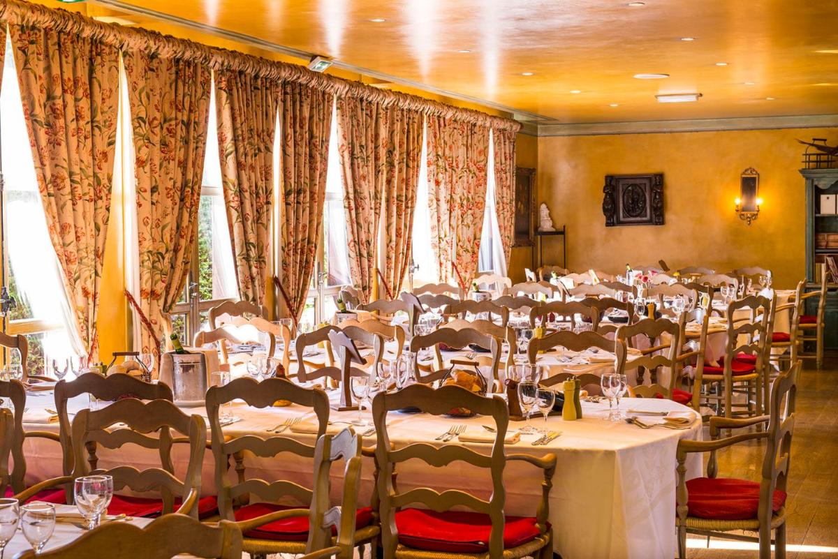 Das Restaurant bietet traditionelle französische Küche mit Gerichten, die mit frischen und saisonalen Zutaten zubereitet werden. Gäste haben die Möglichkeit, mit Blick auf den Kanal, der am Grundstück vorbeiführt, zu speisen, was eine besonders romantische und entspannte Atmosphäre für die Abendmahlzeiten schafft.
