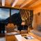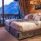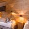 Die Suite Mont Blanc mit einer Fläche von etwa 40 m² erstreckt sich über 2 Ebenen. Auf der ersten Ebene befinden sich ein Wohnzimmer mit einem Schlafsofa, ein Balkon mit Blick auf den Mont Blanc und das Tal von Chamonix sowie ein 1. Badezimmer mit einem WC. In der oberen Ebene erwartet Sie ein Schlafzimmer mit einem offenen Badezimmer mit Whirlpool-Badewanne und separatem WC. Diese Suite verfügt über 2 Flachbild-TVs.