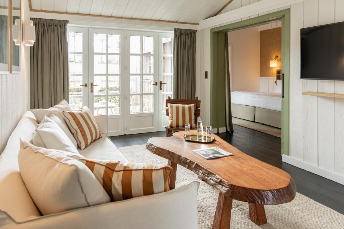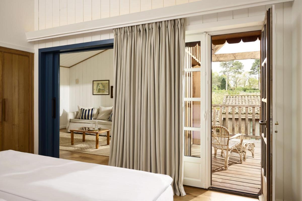 Die Architektur, inspiriert von den traditionellen Holz- und Steinhäusern der Region, fügt sich nahtlos in die umliegende Landschaft ein. Die Zimmer und Suiten, verteilt auf verschiedene Gebäude, bestechen durch ein rustikales, aber anspruchsvolles Design mit natürlichen Materialien und atemberaubender Aussicht auf die Graves-Weinberge. Jedes Detail ist darauf ausgerichtet, französische Authentizität und Eleganz widerzuspiegeln.