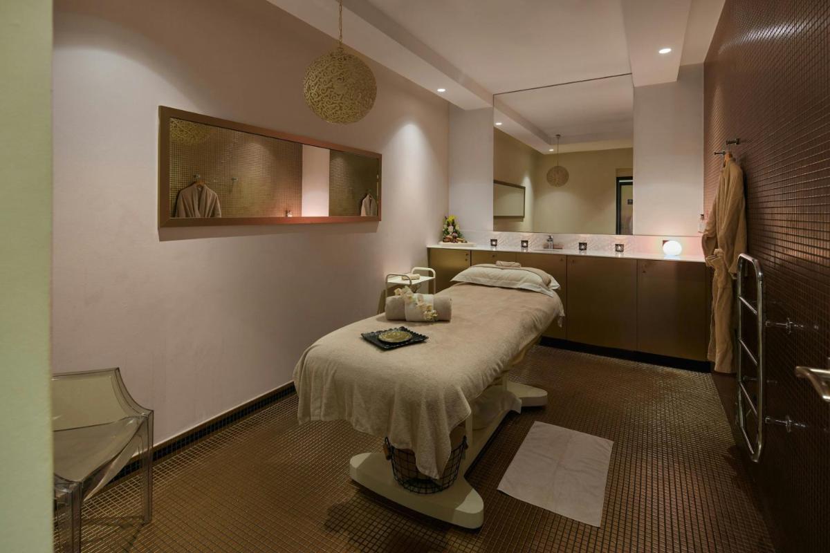 Das Hotel zeichnet sich durch seine außergewöhnliche Architektur aus, mit seiner Kapelle, dem Kreuzgang und den Innenhöfen, die Jahrhunderte der Geschichte erzählen. Die Renovierung hat es verstanden, ursprüngliche Elemente wie freiliegende Balken und antike Steine hervorzuheben und eine Atmosphäre von majestätischer Ruhe und zeitloser Schönheit zu schaffen.