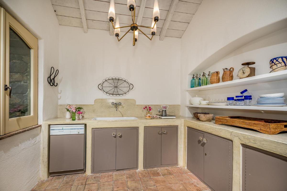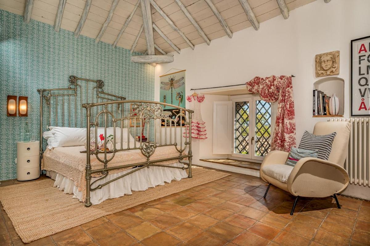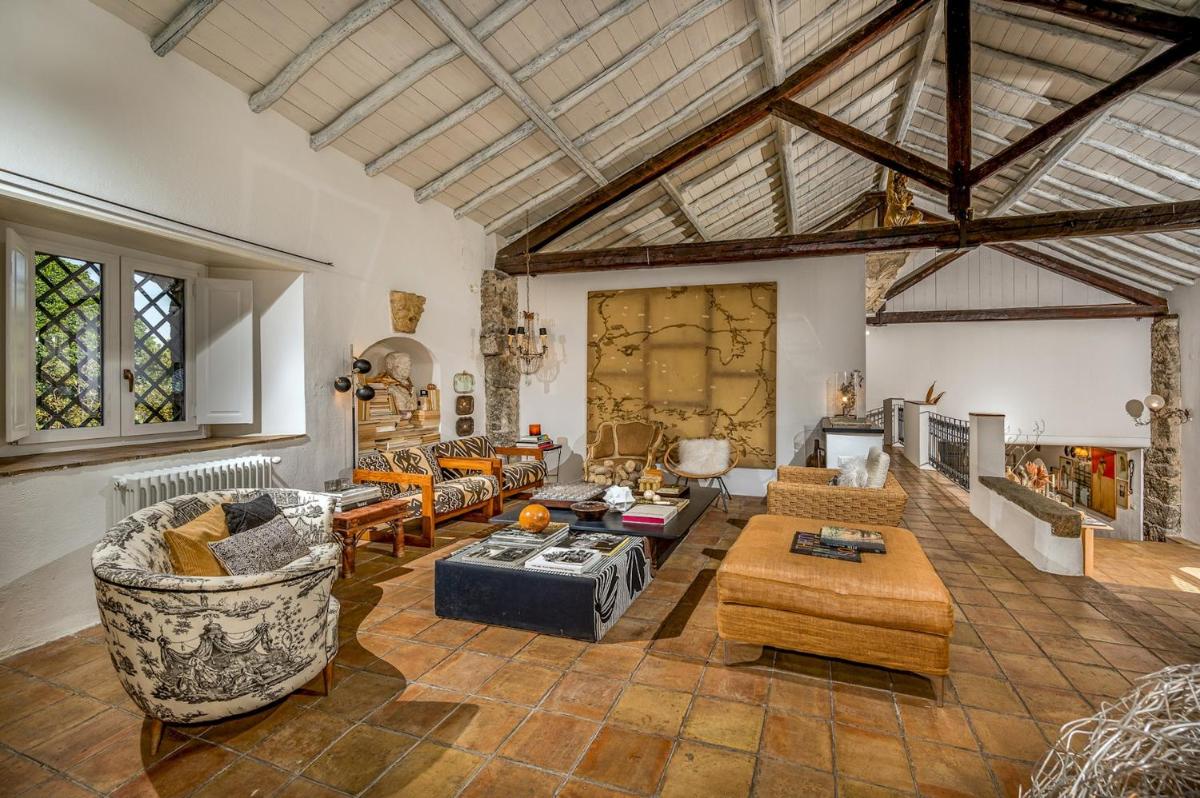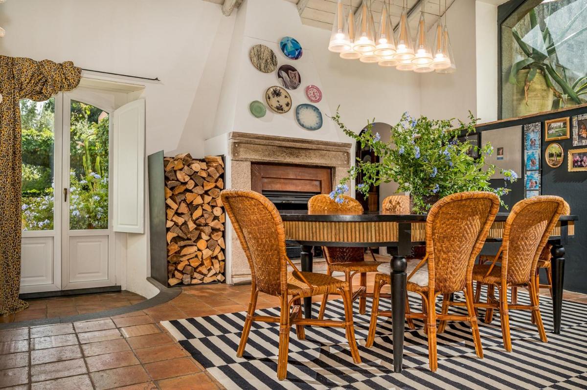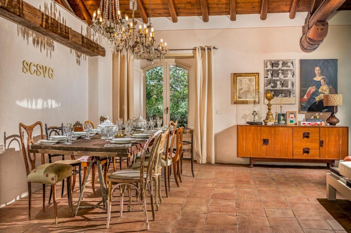 Der Wohnbereich erstreckt sich über mehrere Ebenen mit sichtbaren Holzbalken, originalen Terrakotta-Böden und einem großen Esszimmer mit Kamin. Die voll ausgestattete Küche bietet direkten Zugang zum Garten und Essbereich im Freien.