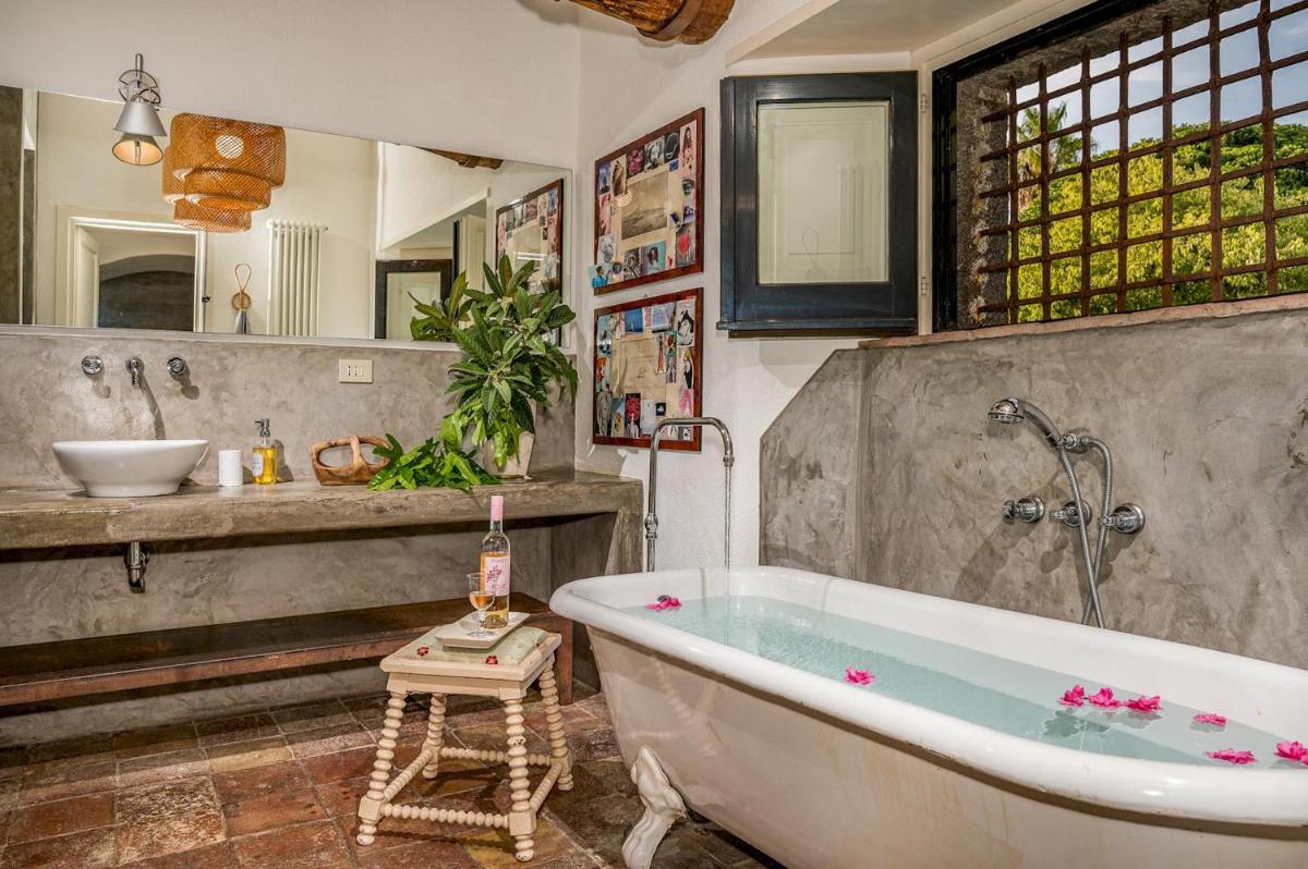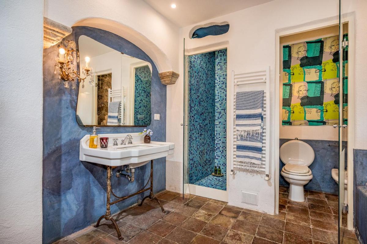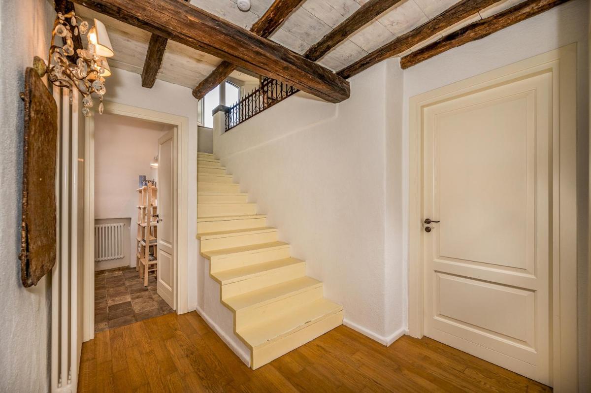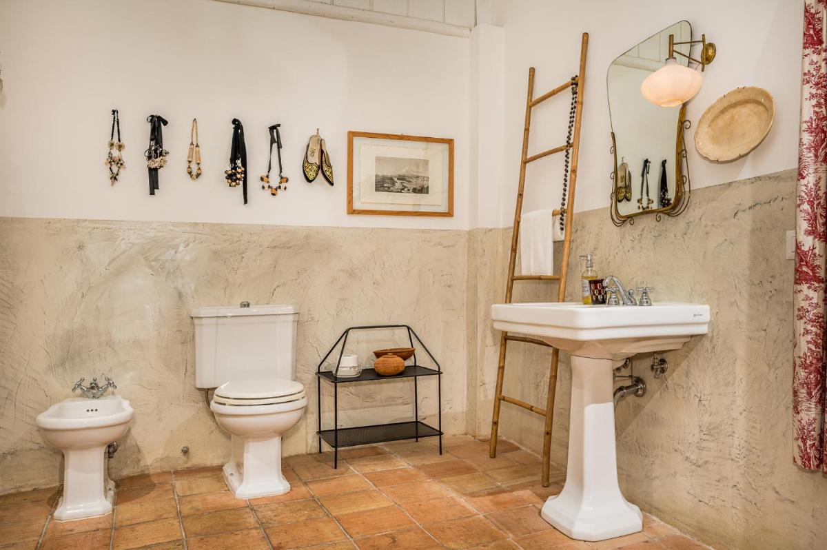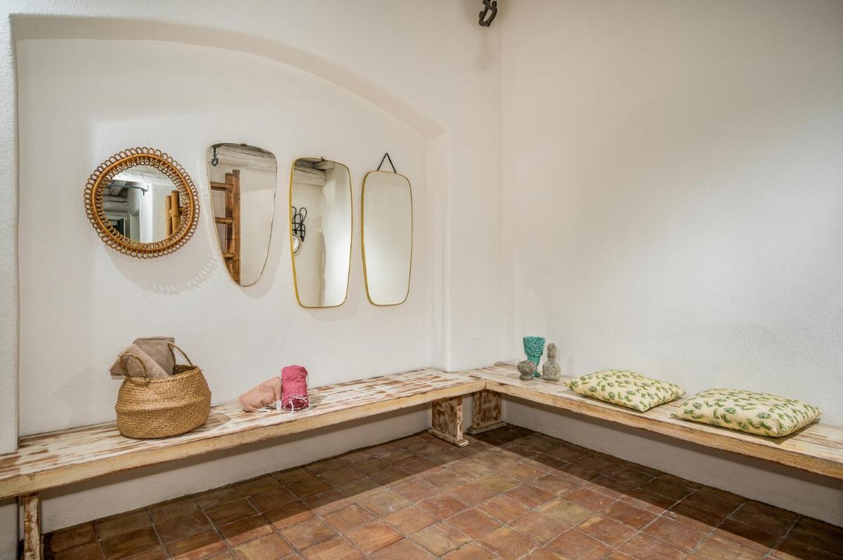 Der Wohnbereich erstreckt sich über mehrere Ebenen mit sichtbaren Holzbalken, originalen Terrakotta-Böden und einem großen Esszimmer mit Kamin. Die voll ausgestattete Küche bietet direkten Zugang zum Garten und Essbereich im Freien.