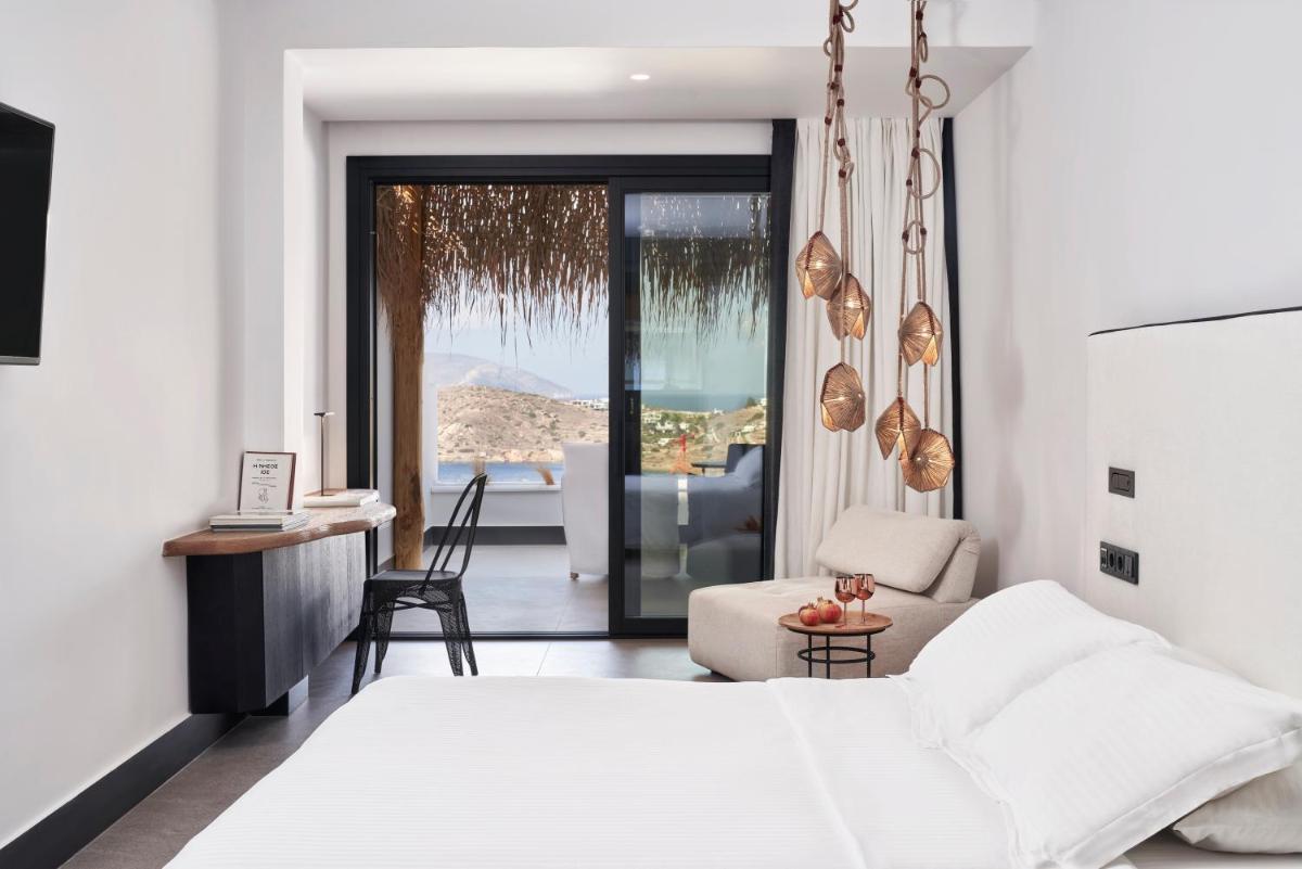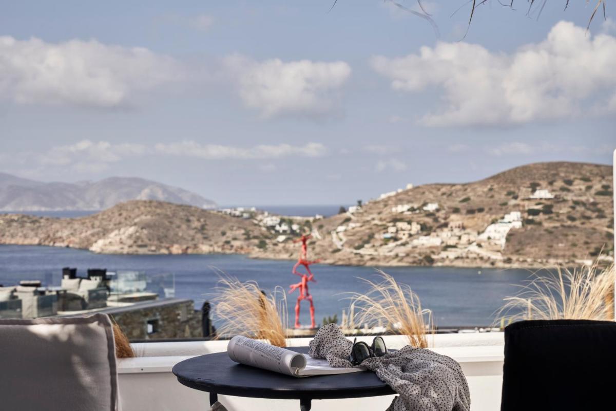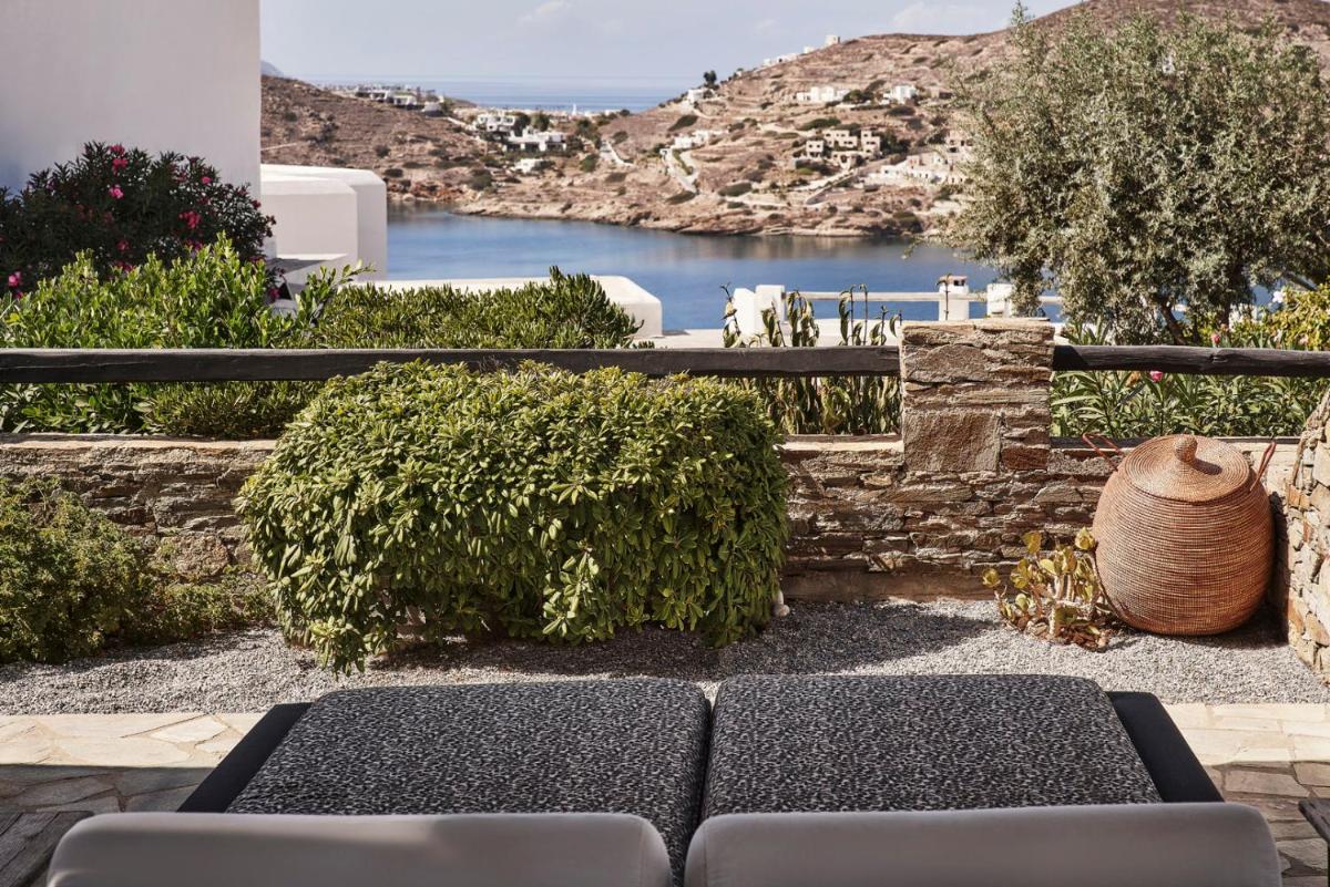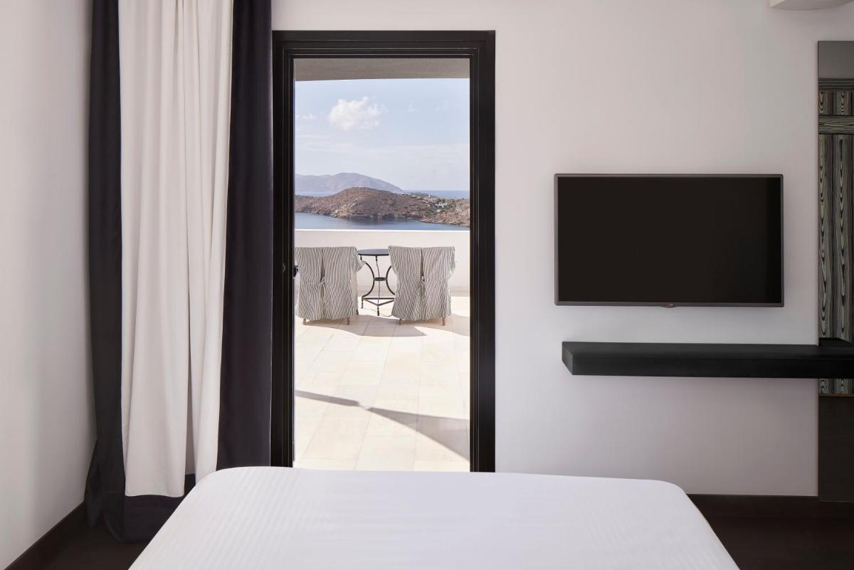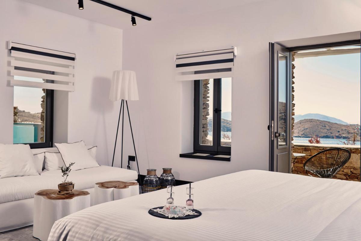 Die Zimmer und Suiten zeichnen sich durch ein schickes, zeitgenössisches Design aus, das die traditionelle griechische Architektur mit modernen Akzenten feiert. Neutrale Farben, natürliche Materialien und klare Linien vereinen sich zu einer gelassenen Umgebung. Jede Unterkunft verfügt über einen privaten Balkon oder eine Terrasse, von der aus man die atemberaubenden Panoramen der Ägäis bewundern kann, perfekt zum Aufwachen und Entspannen.