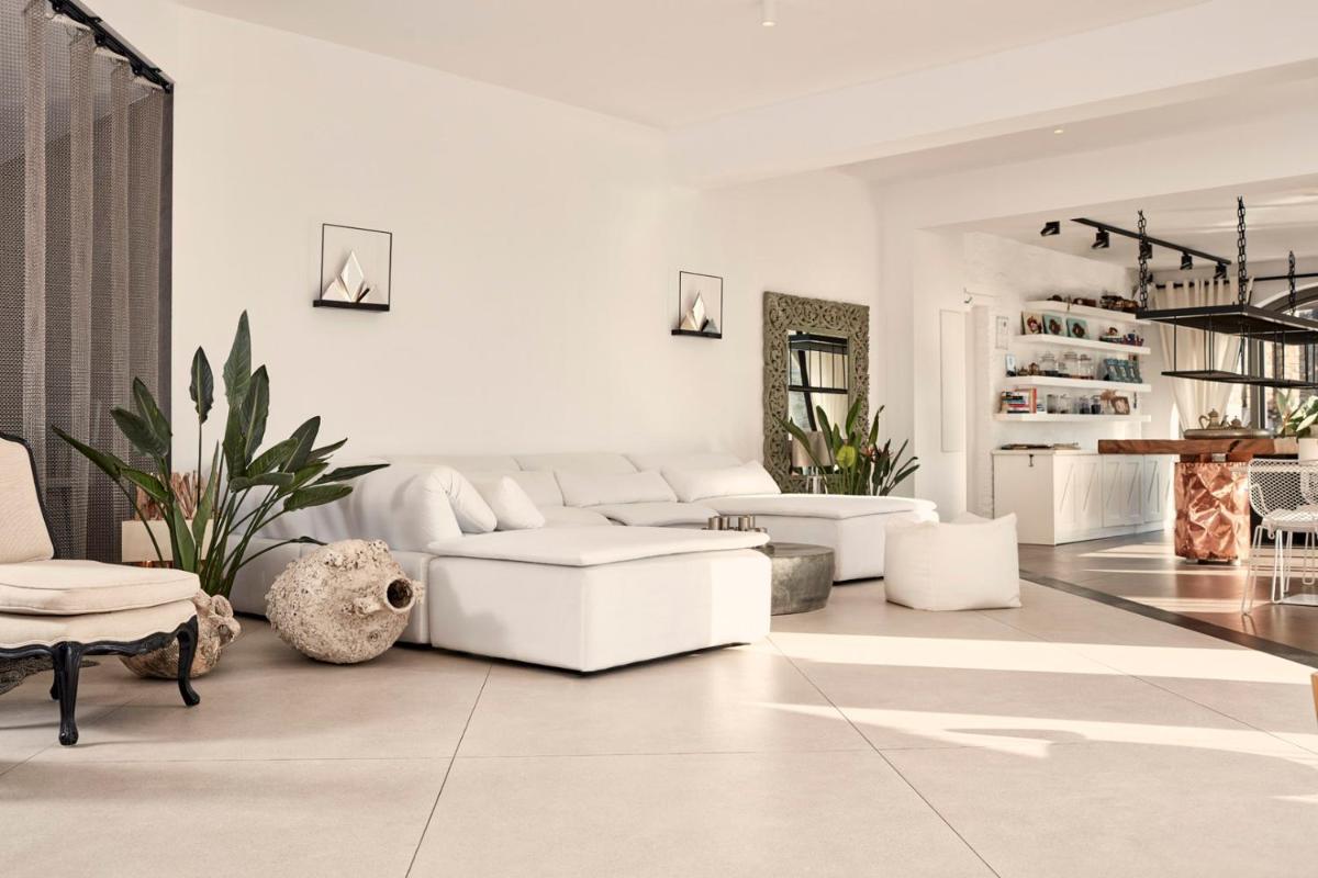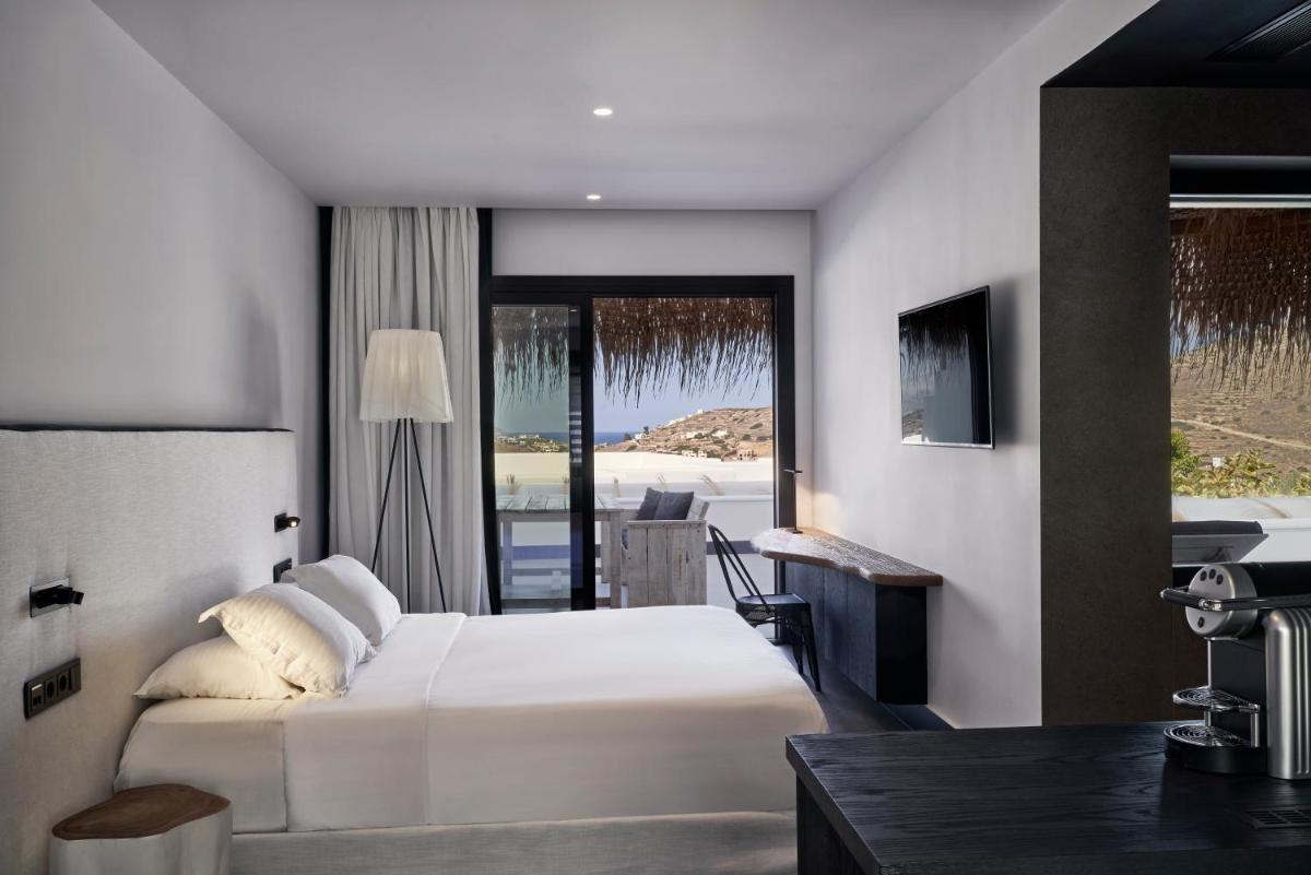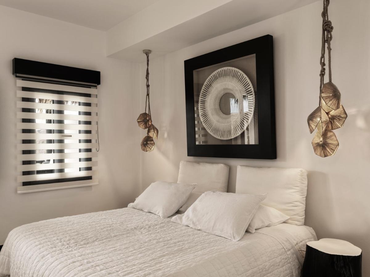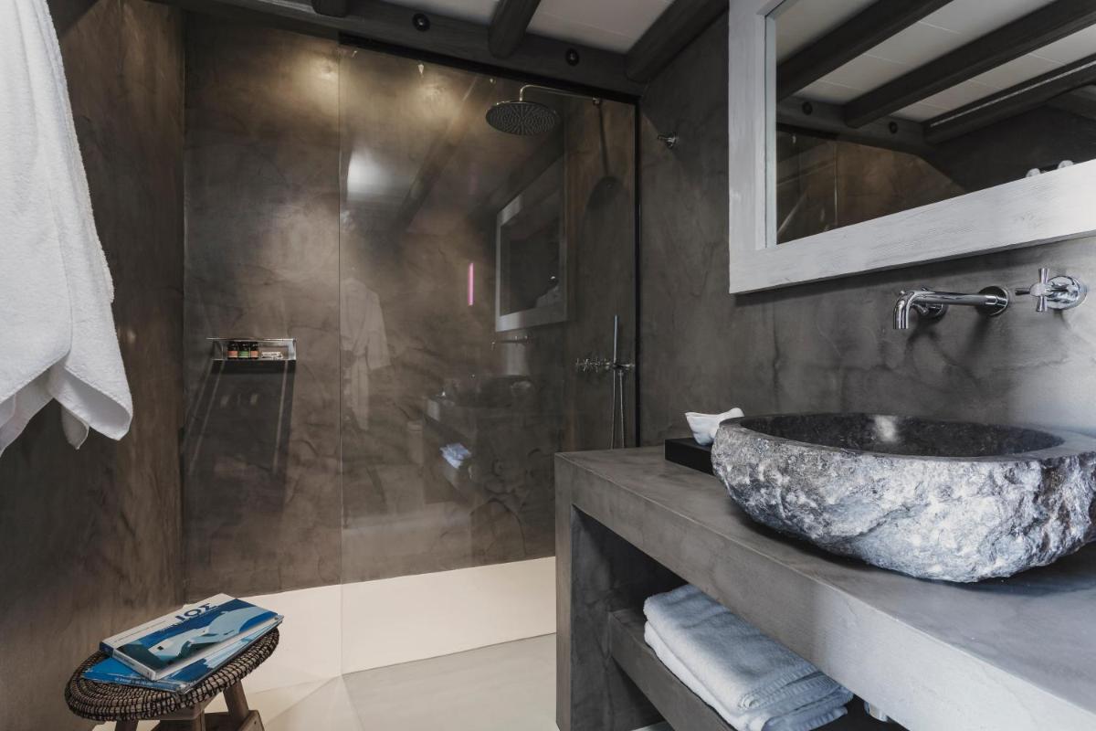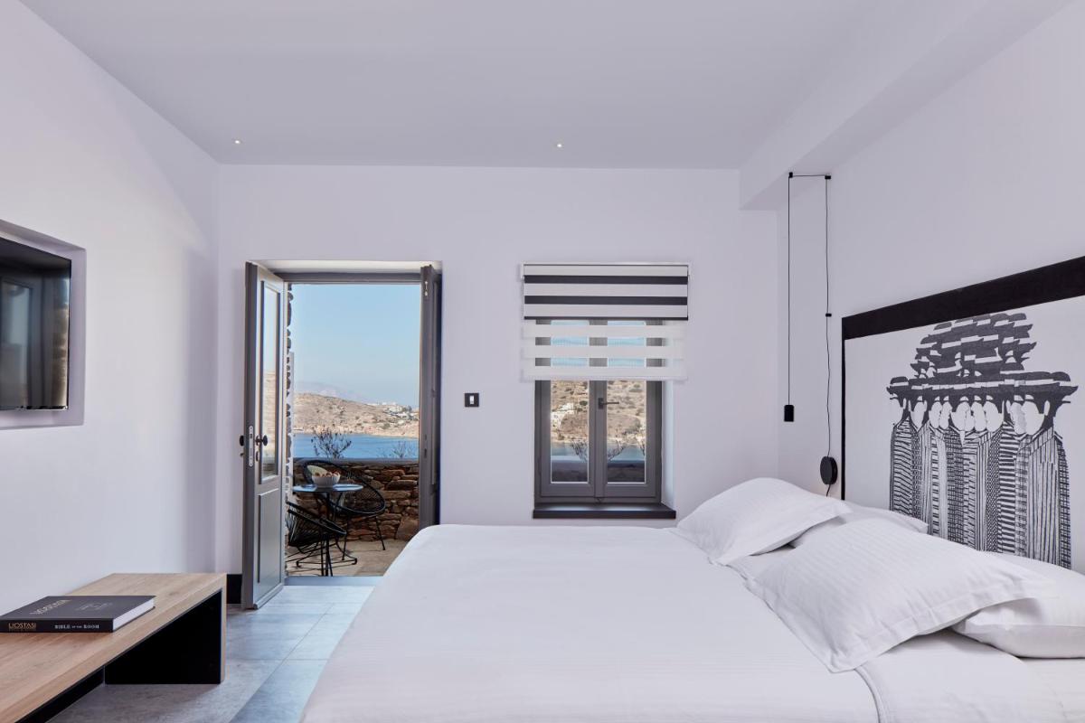 Die Zimmer und Suiten zeichnen sich durch ein schickes, zeitgenössisches Design aus, das die traditionelle griechische Architektur mit modernen Akzenten feiert. Neutrale Farben, natürliche Materialien und klare Linien vereinen sich zu einer gelassenen Umgebung. Jede Unterkunft verfügt über einen privaten Balkon oder eine Terrasse, von der aus man die atemberaubenden Panoramen der Ägäis bewundern kann, perfekt zum Aufwachen und Entspannen.