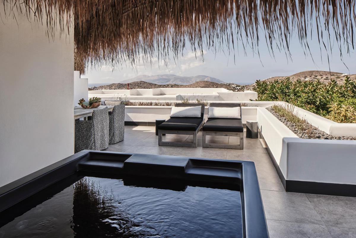 Das soziale und visuelle Herzstück des Liostasi ist sein ikonischer Infinity-Pool, der direkt auf das Meer und die Chora blickt. Das Hotel beherbergt auch ein renommiertes Wellness-Zentrum, das ganzheitliche Behandlungen anbietet. Der Fokus auf Wellness und Entspannung steht im Mittelpunkt des Erlebnisses, mit speziellen Bereichen, um die totale Verjüngung von Körper und Geist zu gewährleisten.