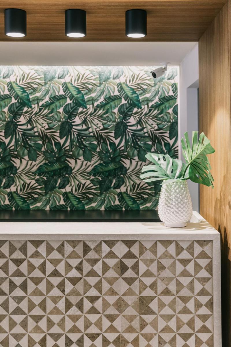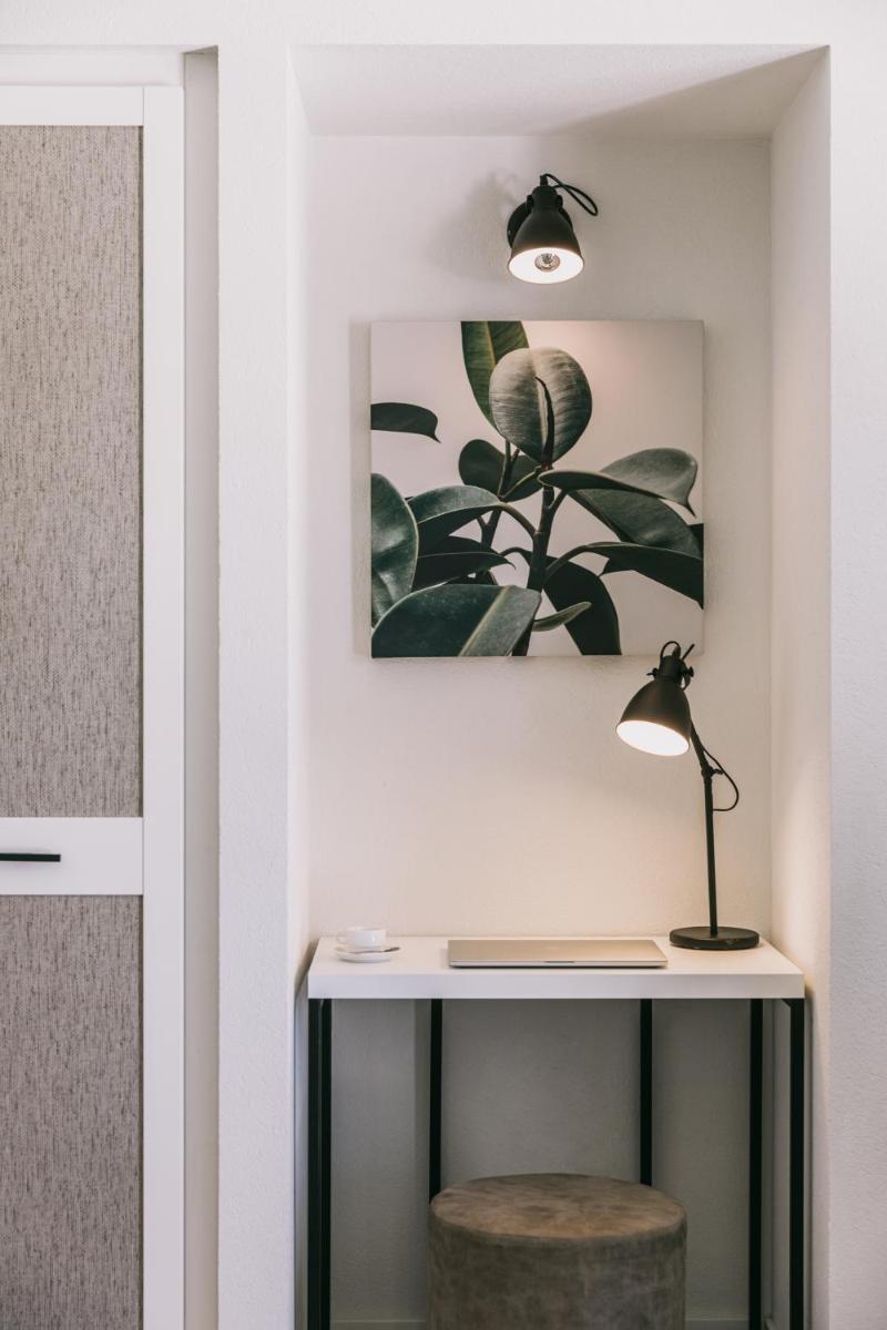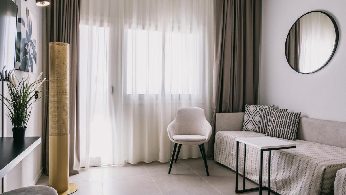 Helle Interieurs in Naturtönen, einige mit Balkonen oder Terrassen zum Meer; Räume für langsame, familienfreundliche Aufenthalte.