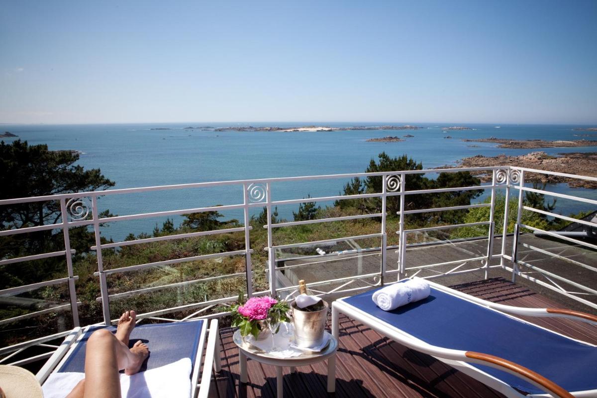 Die Zimmer und Suiten sind geschmackvoll eingerichtet und kombinieren die Wärme von Holz mit maritimen Akzenten und modernen Elementen. Viele öffnen sich zu privaten Terrassen oder Balkonen, die einen unvergleichlichen Blick auf den Ozean und die einzigartigen Felsformationen der Rosa Granitküste bieten. Es ist eine Atmosphäre der totalen Entspannung, in der das Rauschen der Wellen das Erwachen begleitet.