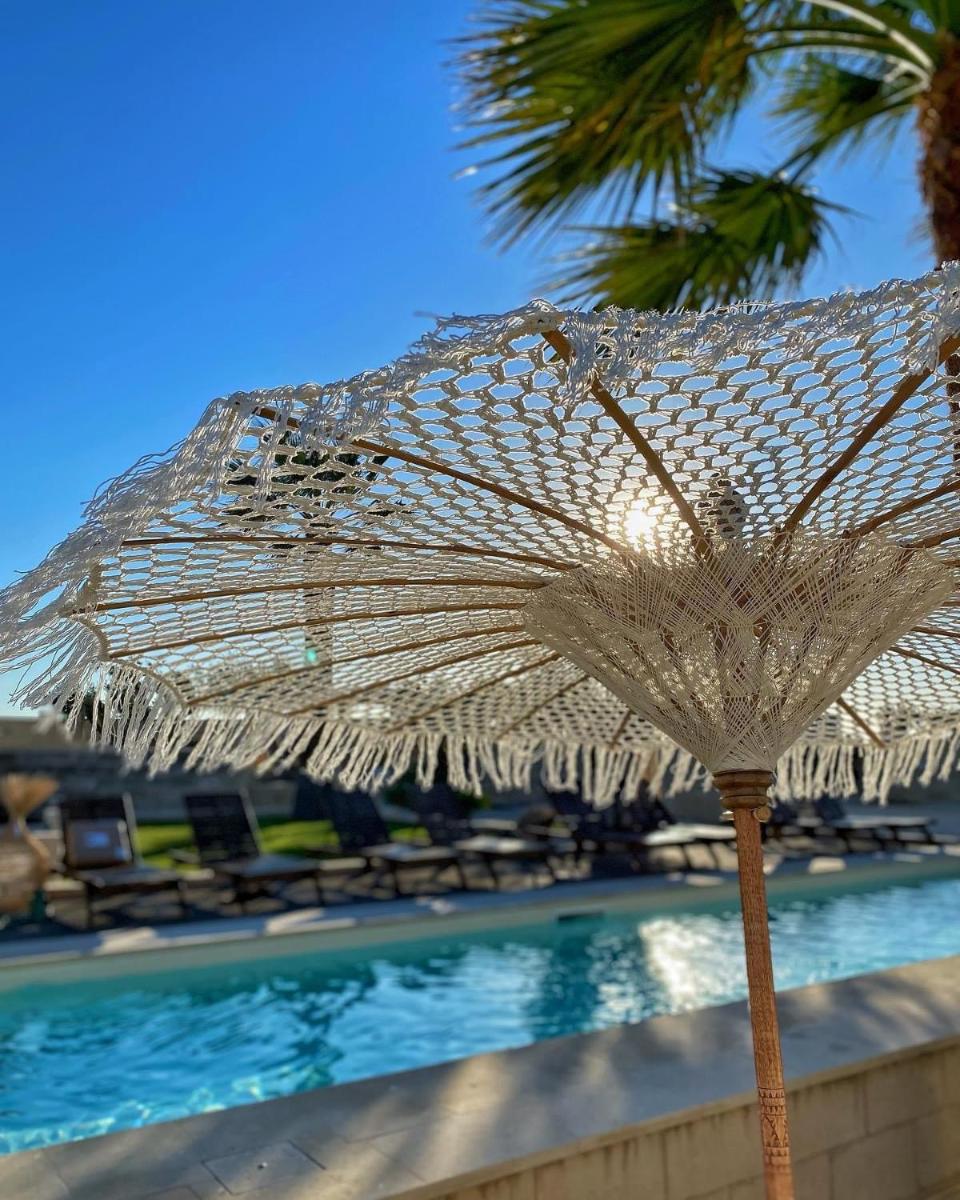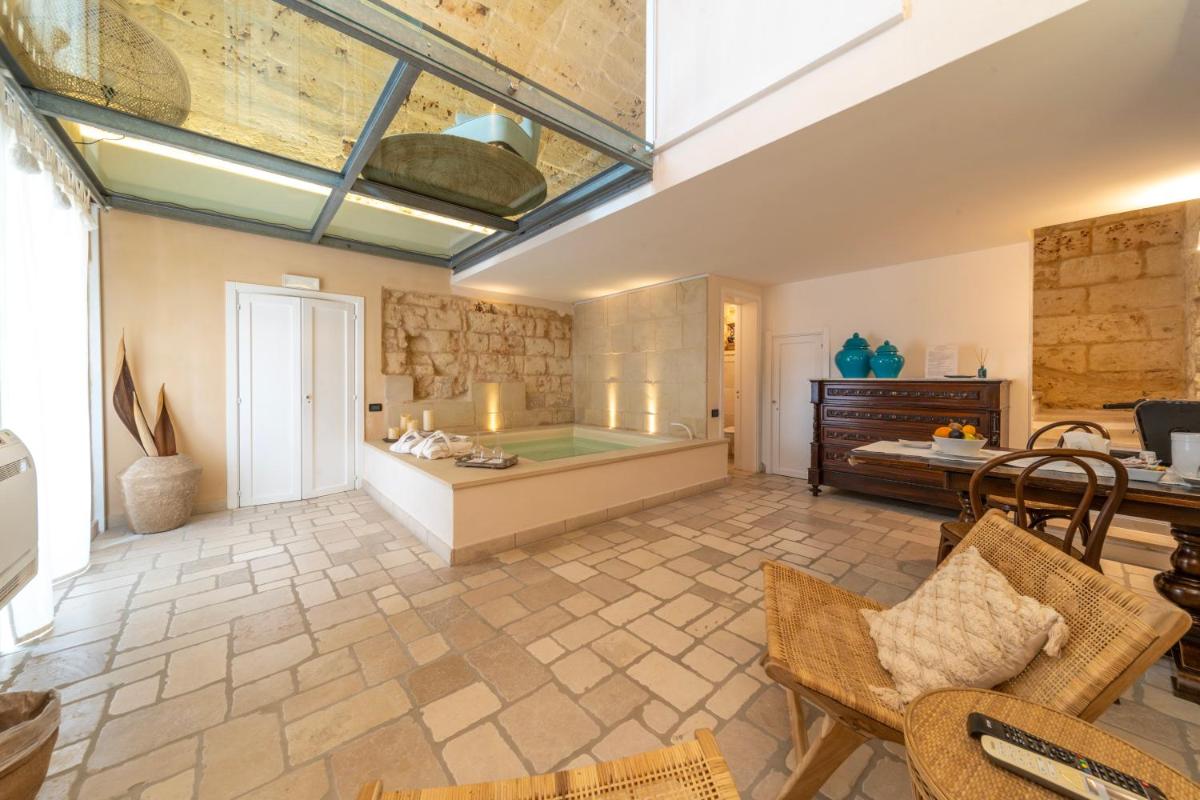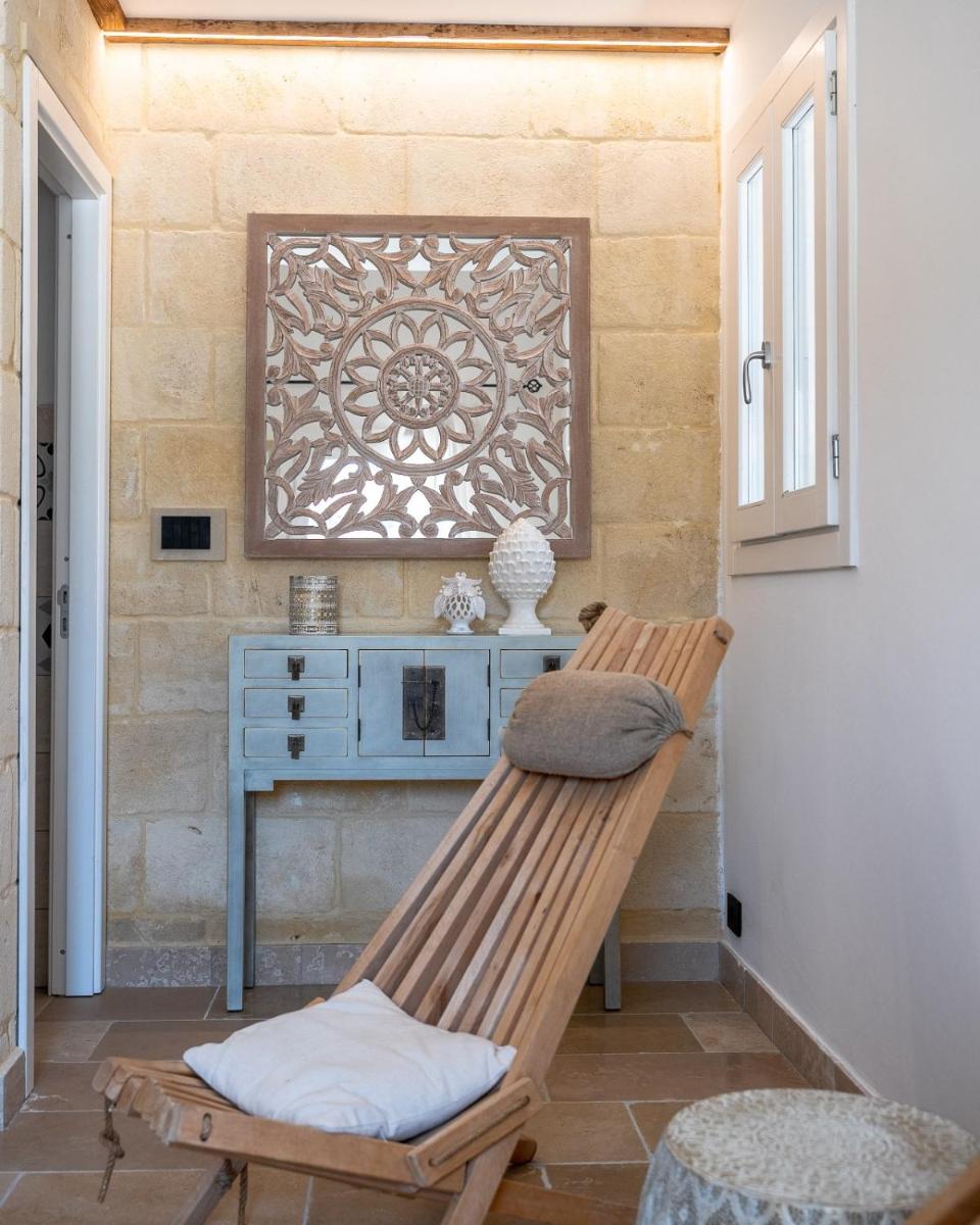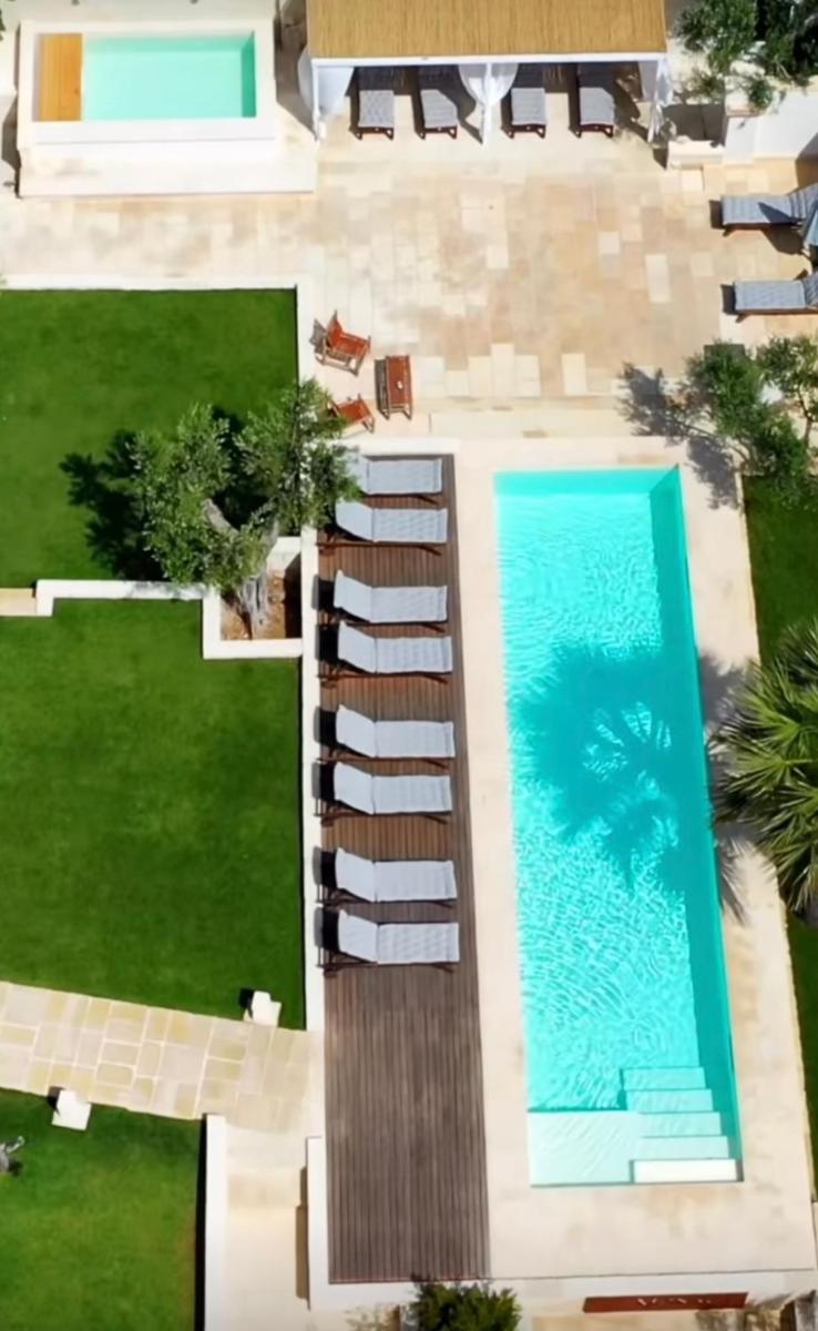 Der große Garten beherbergt den wunderschönen Swimmingpool, das wahre Zentrum der Entspannung, umgeben von einem elegant ausgestatteten Solarium. Die Küche der Masseria dei Monaci zelebriert die Aromen des Salento und bietet ein reichhaltiges Frühstück mit frischen, lokalen Produkten, die oft direkt im Garten der Masseria angebaut werden. Verkostungen und apulische Kochkurse sind auf Anfrage erhältlich.