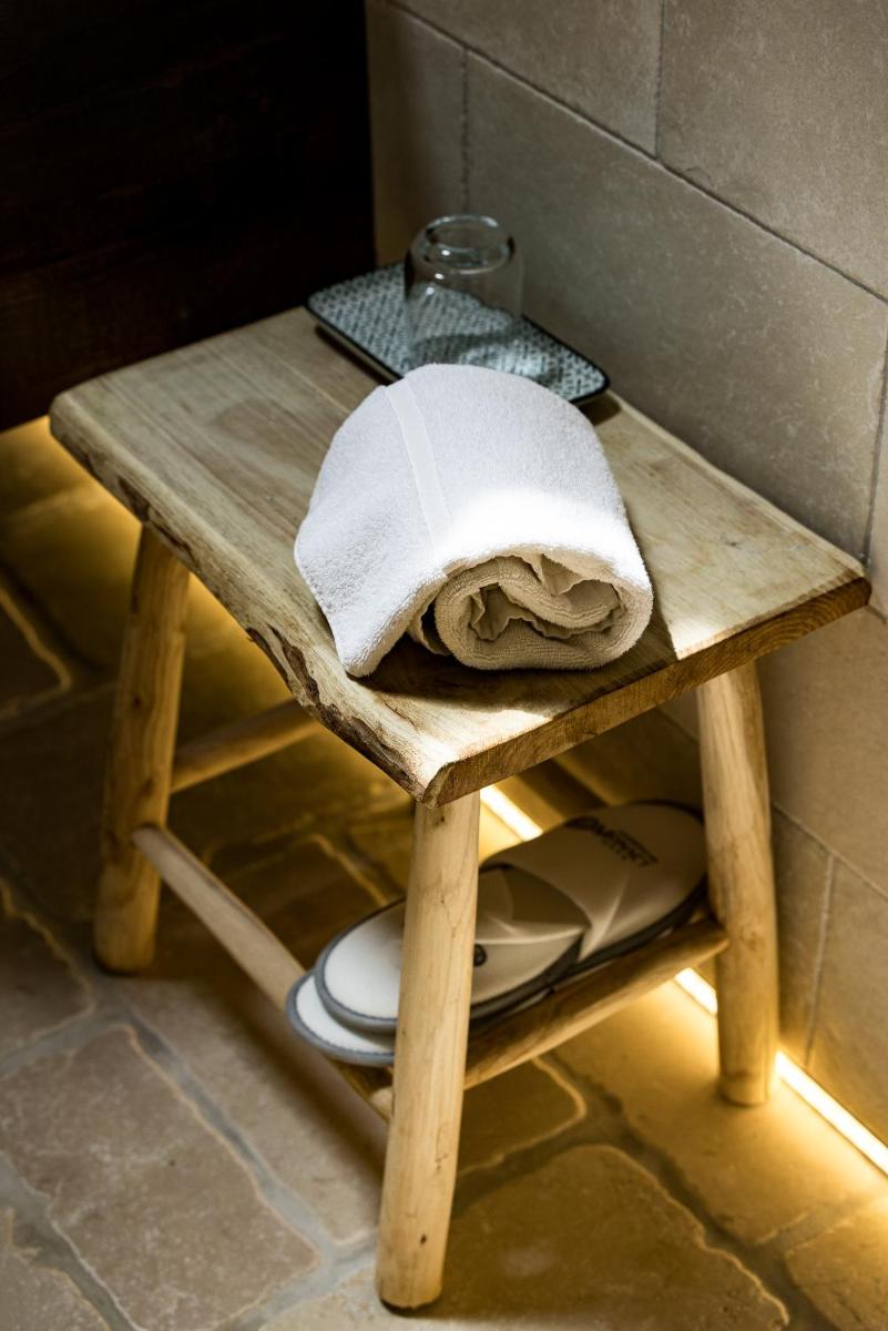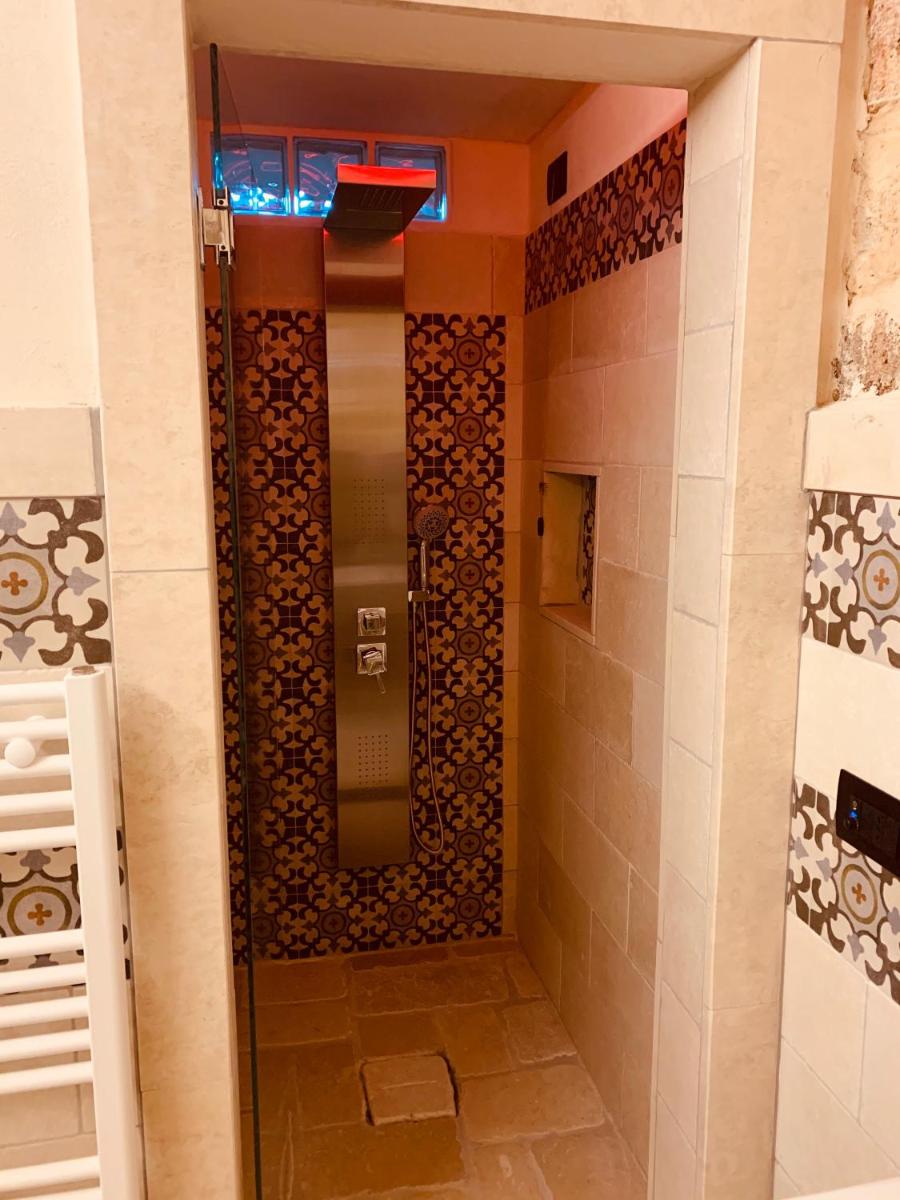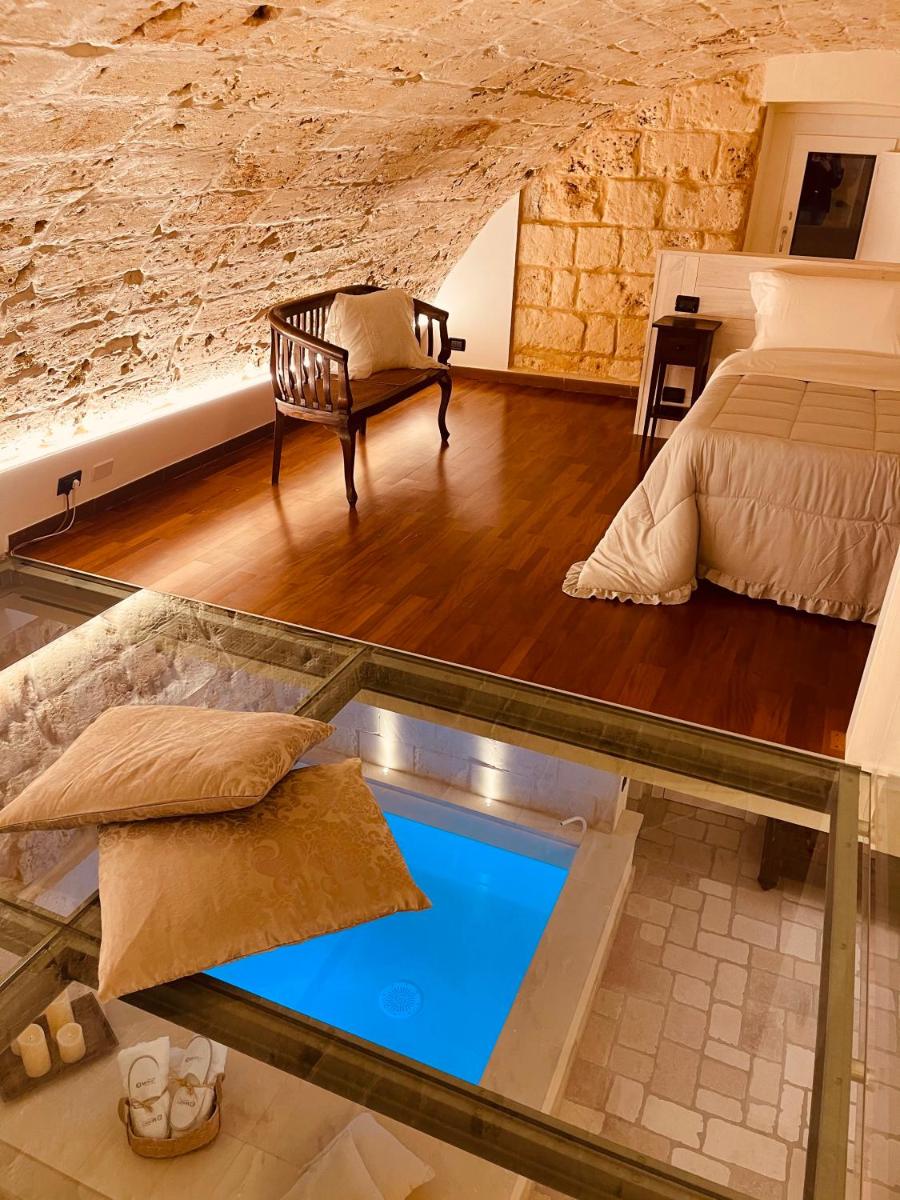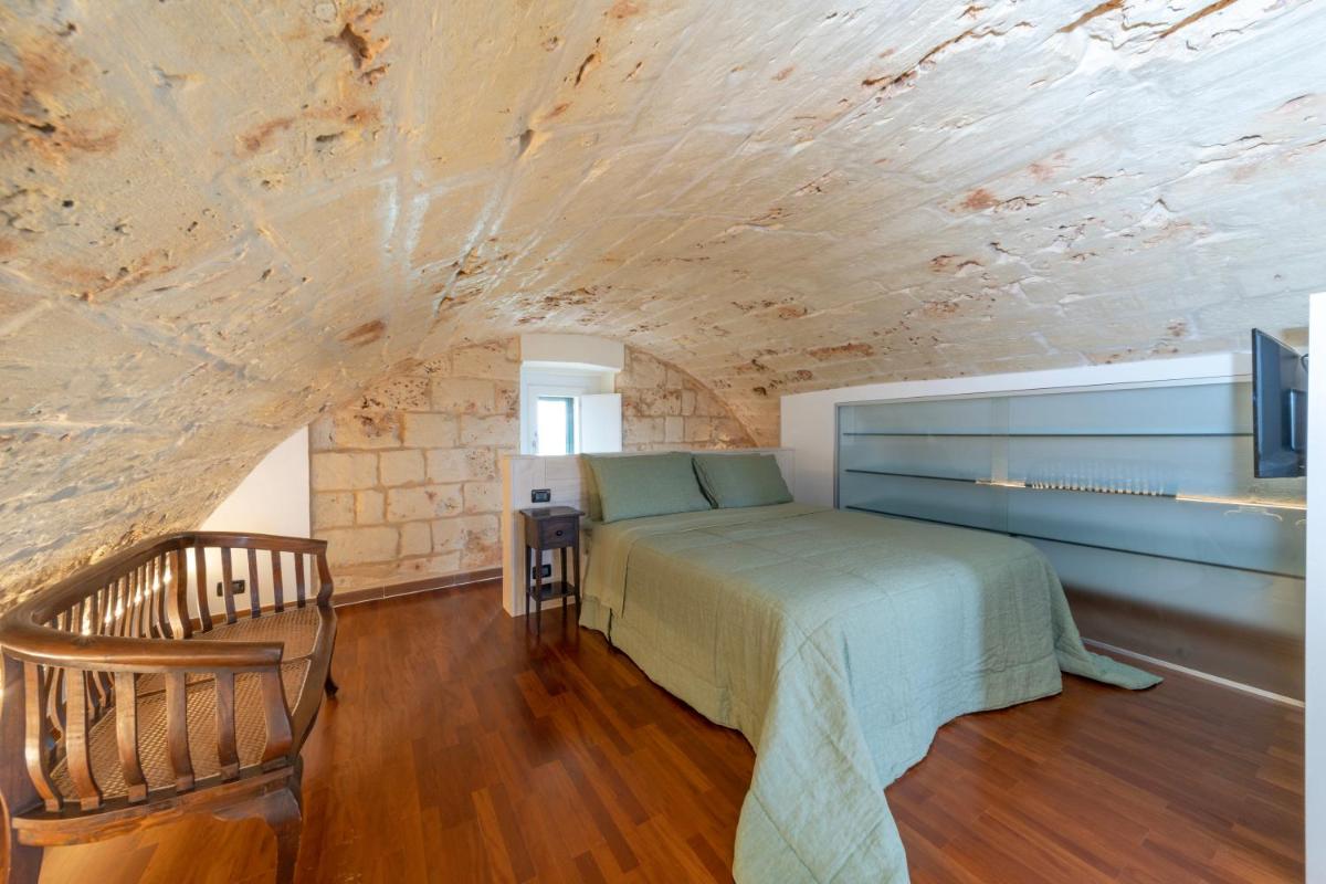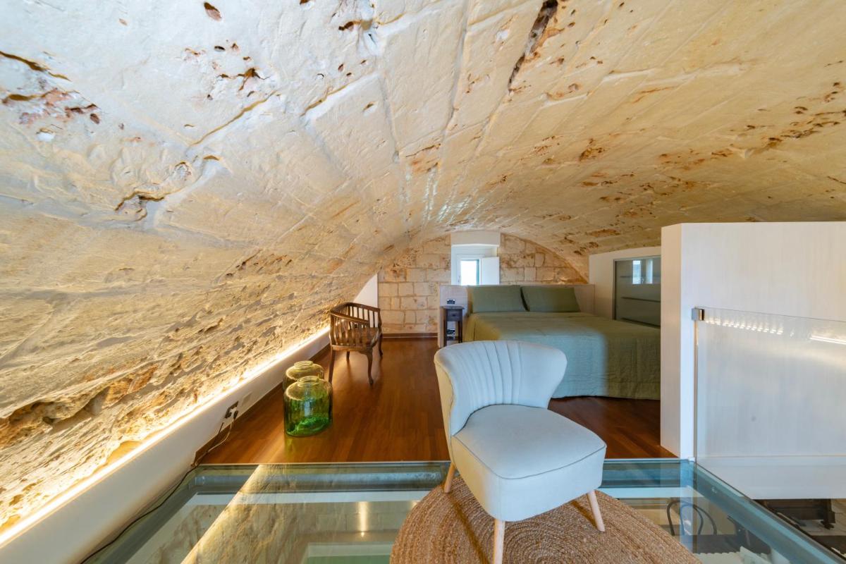 Die Unterkünfte zeichnen sich durch Tonnengewölbe, originale "Chianche"-Böden und eine Einrichtung aus, die Tradition mit modernem Design verbindet. Die Masseria bietet verschiedene Arten von Zimmern, Suiten und Apartments, alle ausgestattet mit Klimaanlage, kostenlosem WLAN, Minibar und privater Terrasse. Die Atmosphäre ist intim und romantisch, ideal für Paare und Familien.