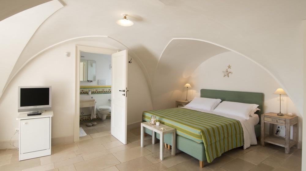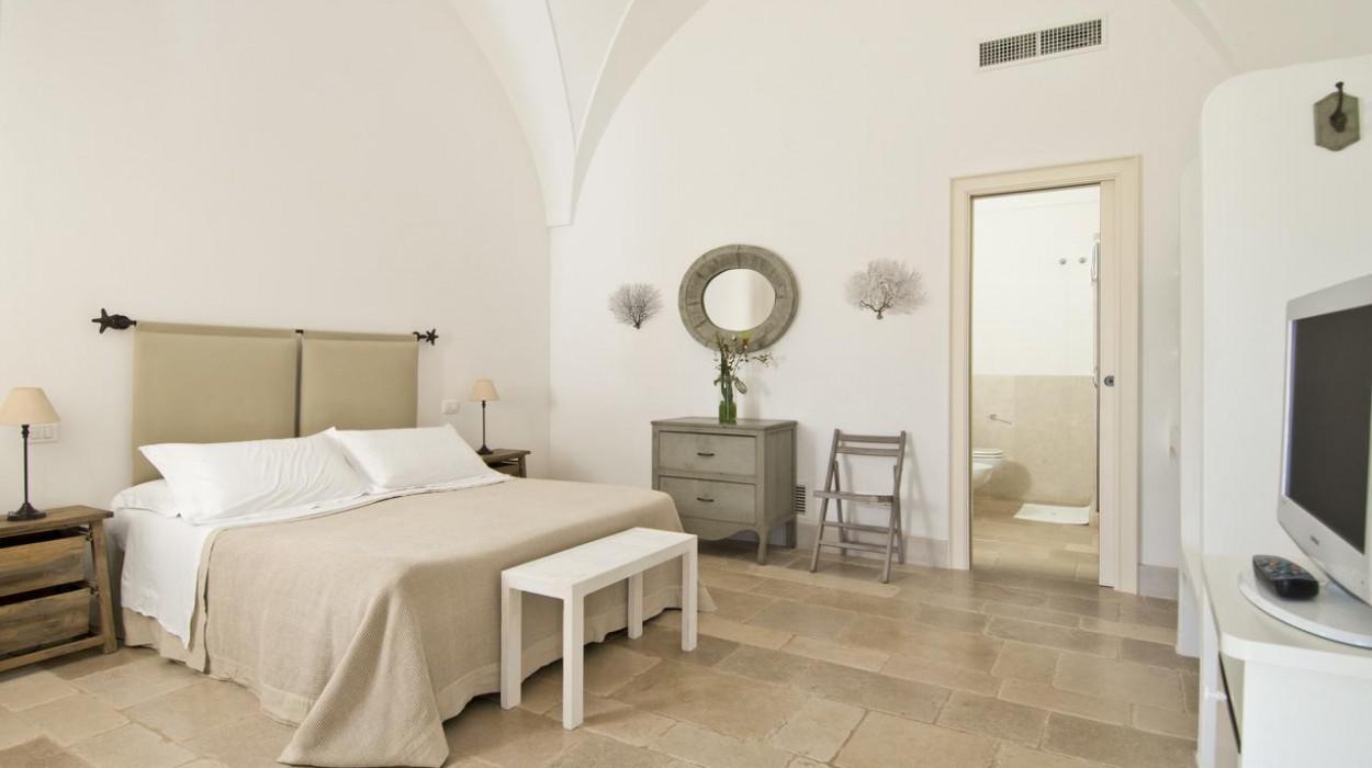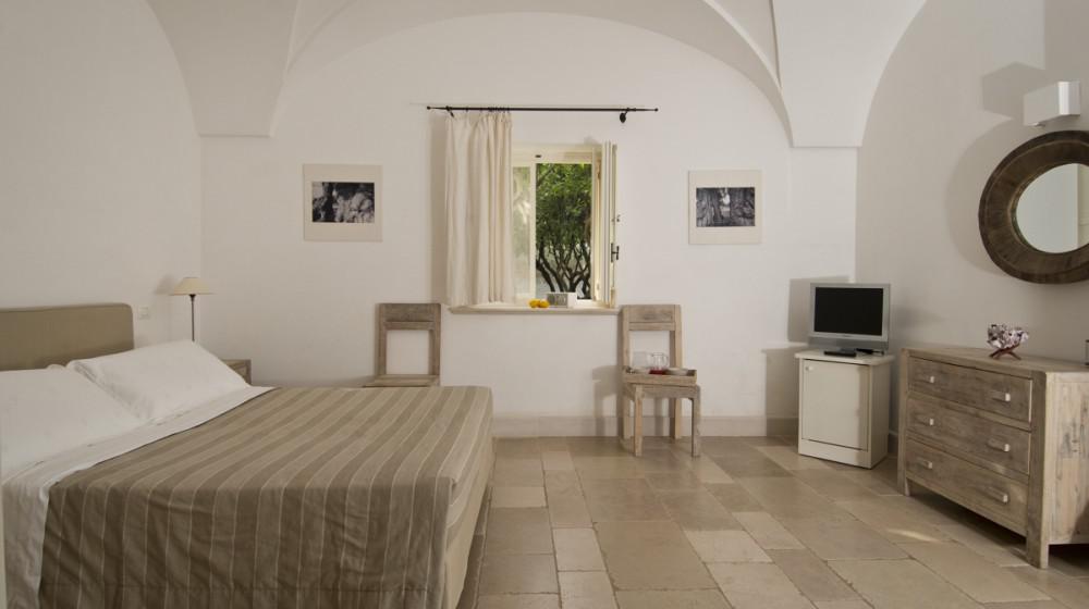Alle Zimmer verfügen über Klimaanlage, privates Bad mit Glasdusche, Queen-Size-Bett, LCD-TV, Minibar und Safe. Einige Zimmer bieten Gewölbedecken und private Terrassen, andere haben Patios oder Balkone mit Blick auf den Olivenhain.