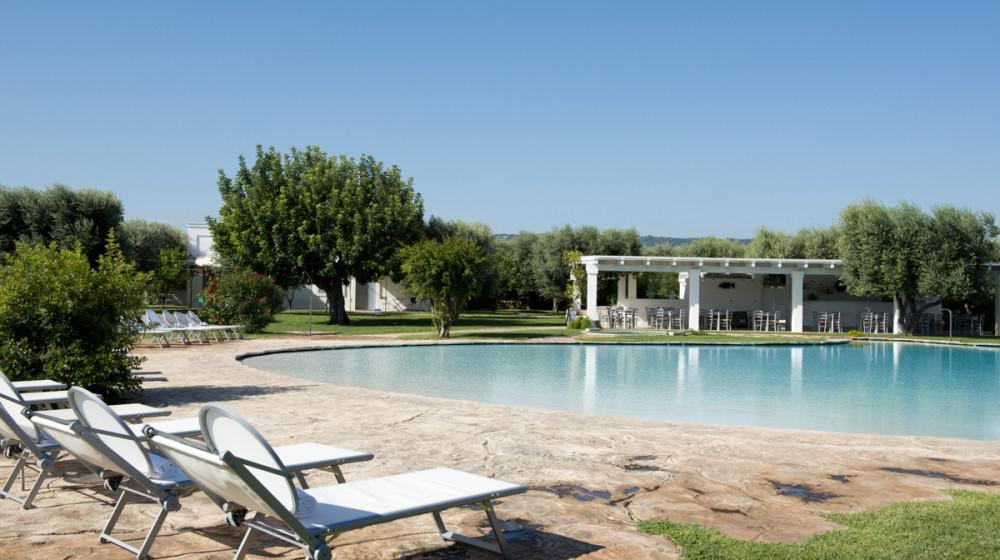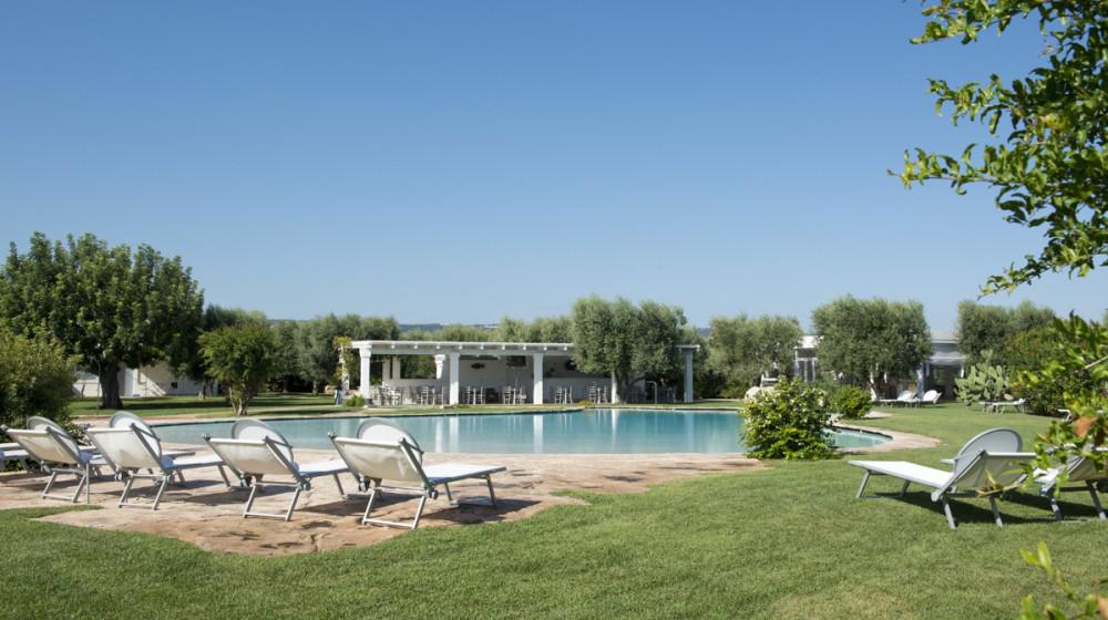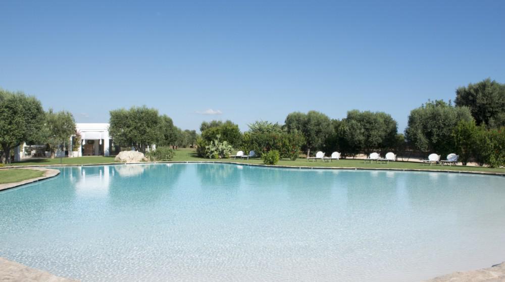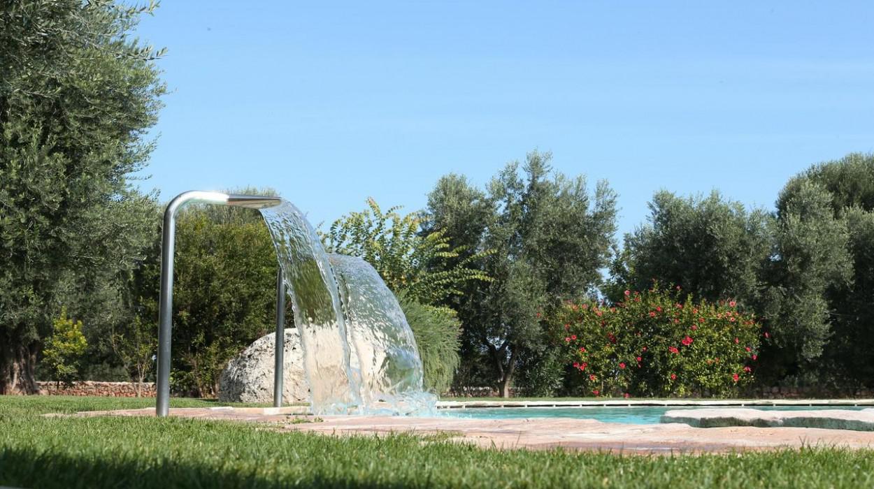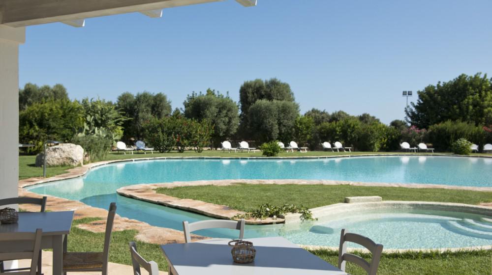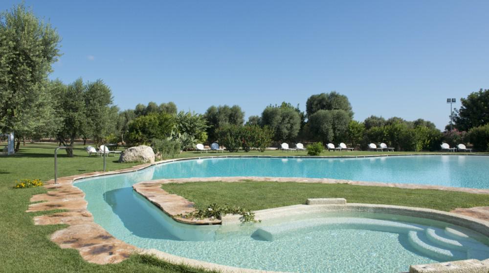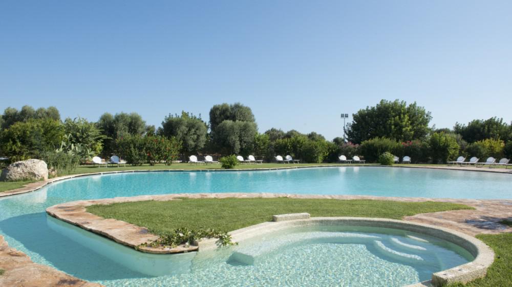 Der saisonale Außenpool ist von Olivenbäumen umgeben und mit Liegestühlen sowie einem Solariumbereich ausgestattet. Garten und Pfade laden zum Entspannen und Spazieren ein.