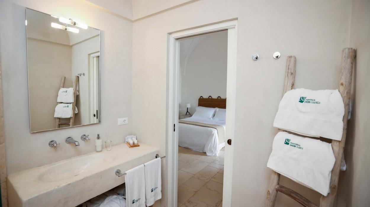Masseria Don Luigi befindet sich in Savelletri di Fasano, Brindisi. Die authentische apulische Masseria ist im minimalistischen Stil eingerichtet – mit lokalen Handwerksmöbeln, weißen Wänden und hellen Steinböden – umgeben von jahrhundertealten Olivenbäumen.