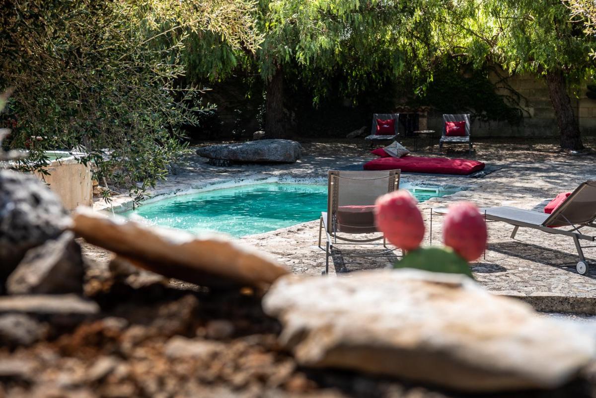 Die Masseria bietet zwei herrliche Außenpools, darunter einen beheizten/geheimen, umgeben von üppigen Gärten und Sonnenliegen. Für das Wohlbefinden können die Gäste das Wellnesscenter mit Sauna, Fitnessraum nutzen und von Tiefengewebsmassagen, Behandlungen und Yoga-Kursen profitieren. Das Anwesen umfasst ein eigenes Weingut, das geführte Verkostungen lokaler Weine (Primitivo di Manduria) und Olivenöl anbietet. Das interne Restaurant bietet eine gehobene regionale Küche mit À-la-carte-Optionen und Degustationsmenüs.