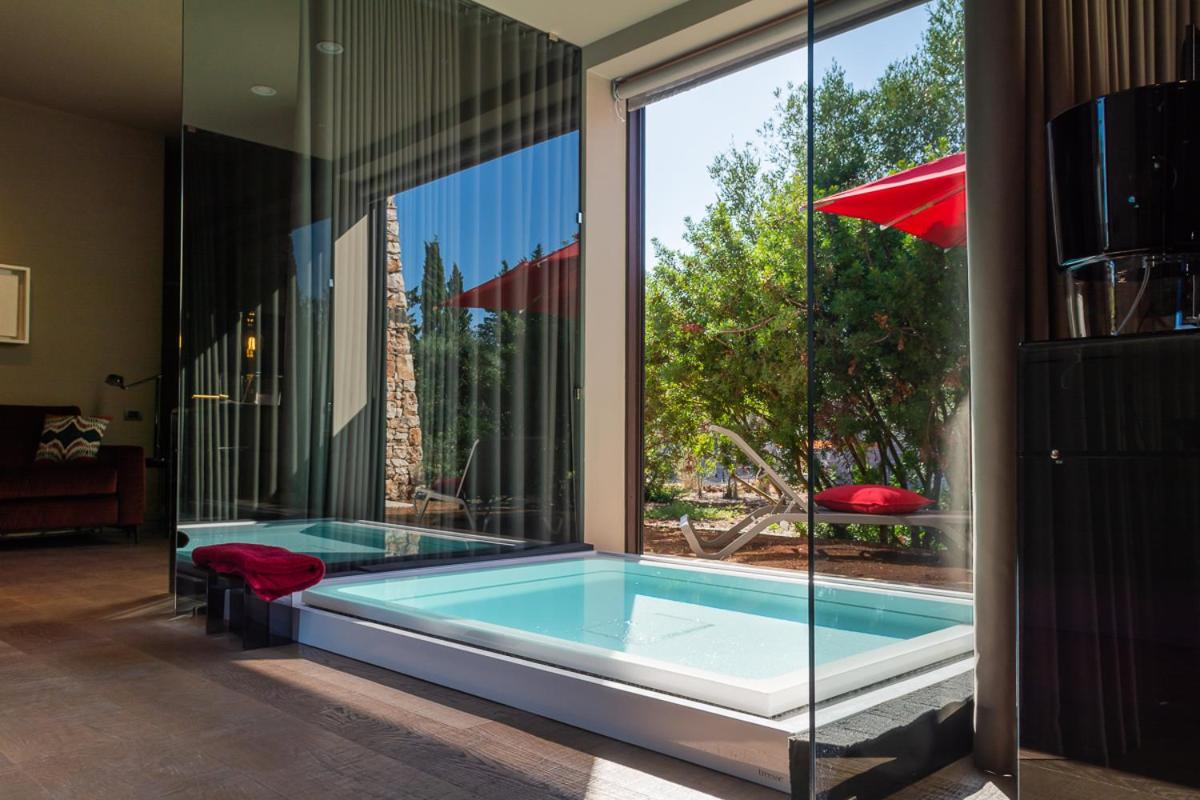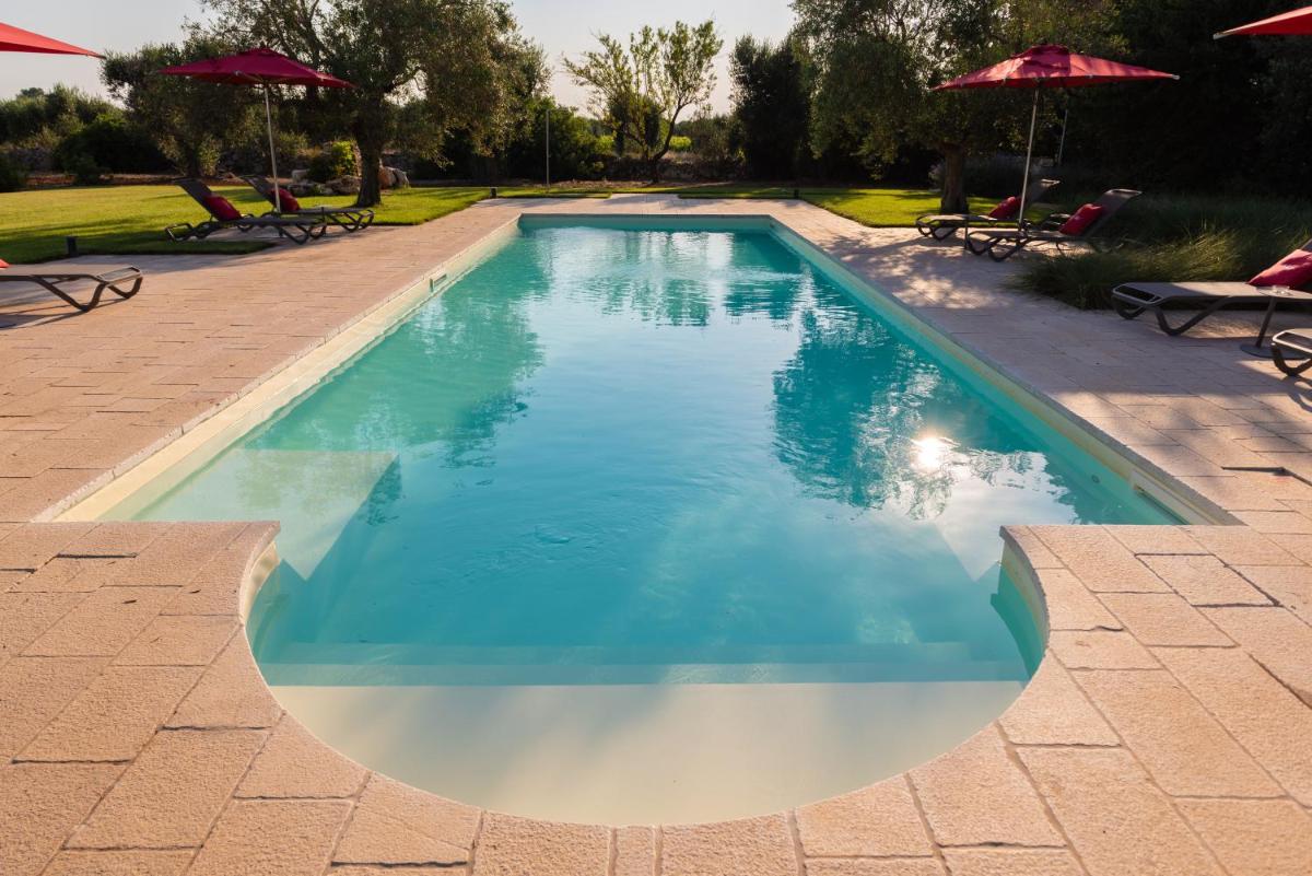 Die 15 exklusiven Suiten und Zimmer wurden aus den alten Gebäuden der Masseria gewonnen. Jede Unterkunft verfügt über ein raffiniertes und personalisiertes Design und bietet moderne Annehmlichkeiten wie Klimaanlage, 42-Zoll-Flachbild-Sat-TV mit Streaming-Diensten, Minibar, Kochnische und Espressomaschine. Die privaten Badezimmer sind mit Dusche, Bidet, Designer-Pflegeprodukten und Bademänteln ausgestattet. Einige Suiten verfügen über eine freistehende Badewanne oder einen exklusiven privaten Pool und Patio.