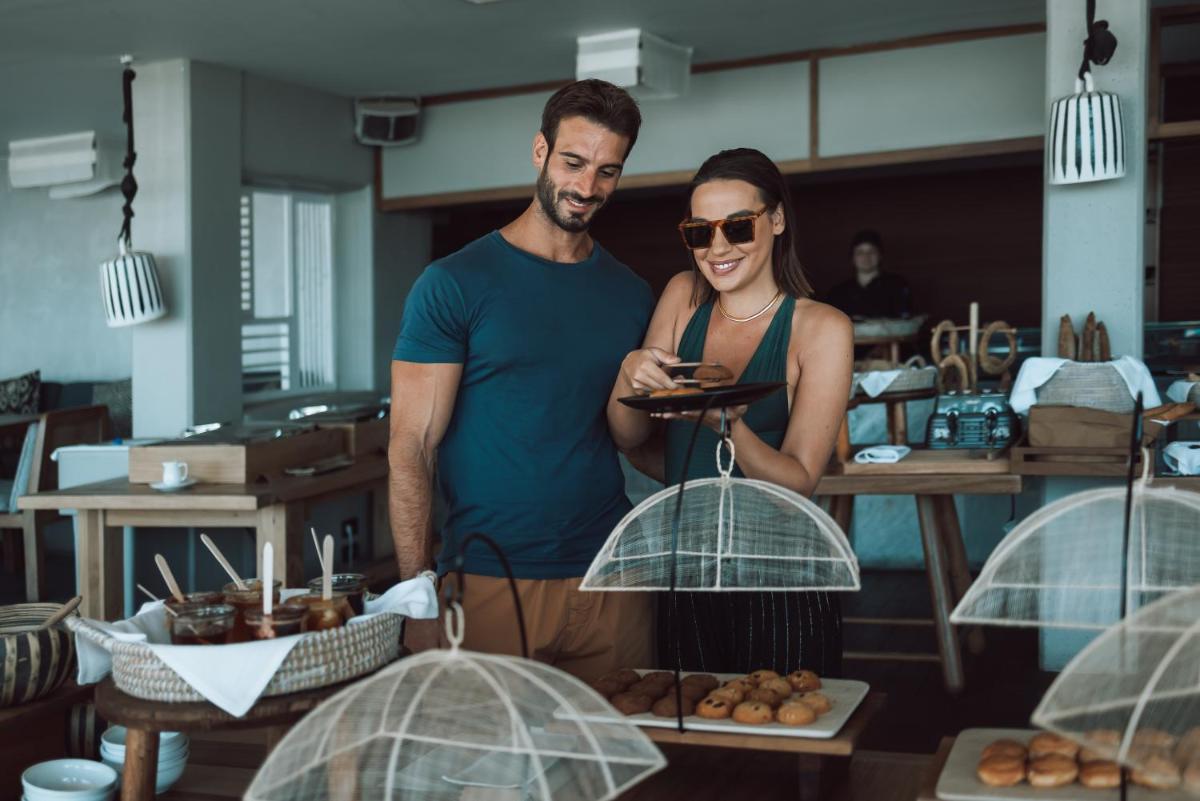 Eines der Highlights des Mykonos Blanc ist sein exklusiver Beach Club am Ornos Strand, wo Gäste erstklassige Sonnenliegen und Sonnenschirme mit personalisiertem Bar-Service genießen können. Das gastronomische Angebot umfasst Gourmet-Restaurants, die mediterrane Aromen mit einem zeitgenössischen Touch zelebrieren und unvergessliche Abendessen mit Blick auf die Ägäis bieten.