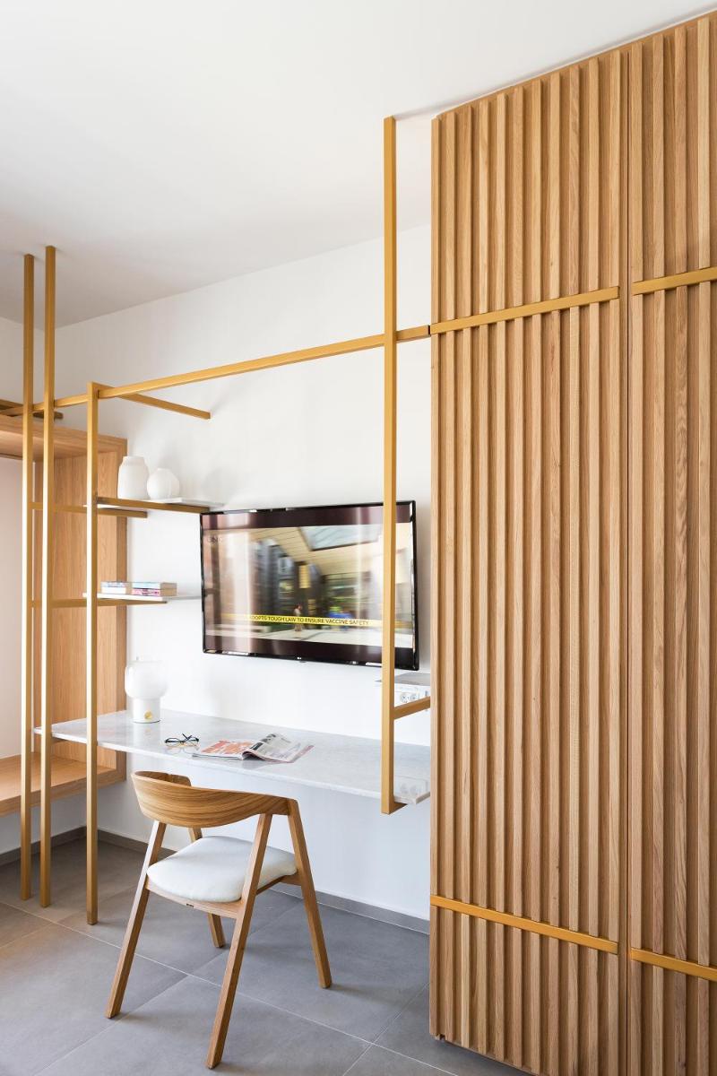 Trotz der Nähe zu ikonischen Stränden und dem pulsierenden Zentrum der Insel bewahrt Mykonos Soul eine Atmosphäre tiefster Ruhe. Seine erhöhte Lage bietet eine unbezahlbare Gelassenheit und macht es zur idealen Wahl für Paare und Reisende, die eine Oase der Entspannung suchen, nachdem sie die kosmopolitischen Attraktionen der Insel erkundet haben.