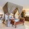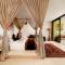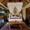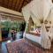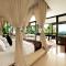 Die Unterkünfte bestehen aus traditionellen Villen im balinesischen Stil, gebaut aus natürlichen Materialien und mit Strohdächern. Jede Villa bietet eine private Terrasse mit einem spektakulären Blick auf das Tal und den darunter liegenden Dschungel, oft ausgestattet mit einem privaten Infinity-Pool oder einem Entspannungsbereich, was maximale Privatsphäre und ununterbrochenen visuellen Kontakt mit der Natur bietet.