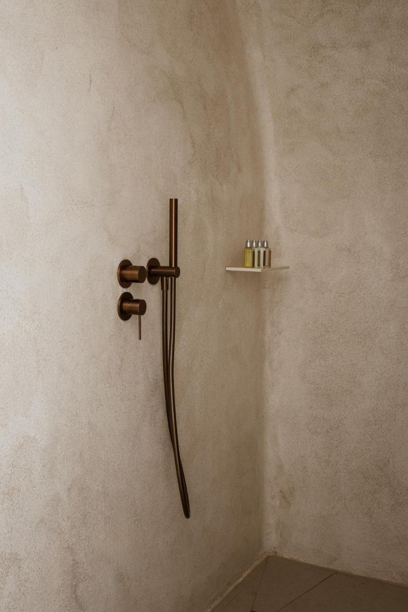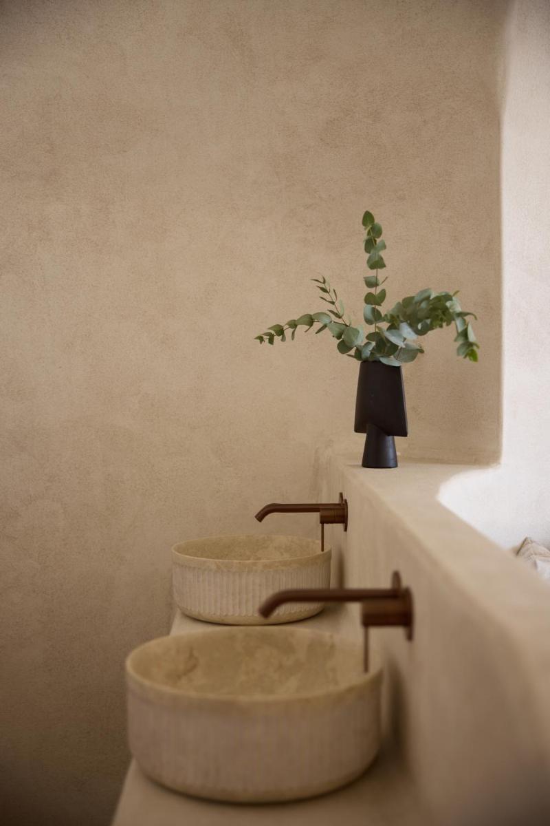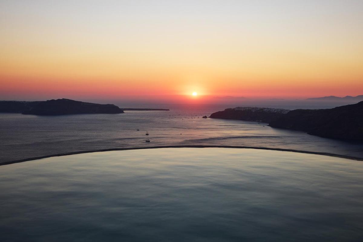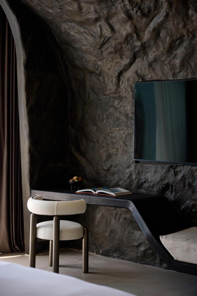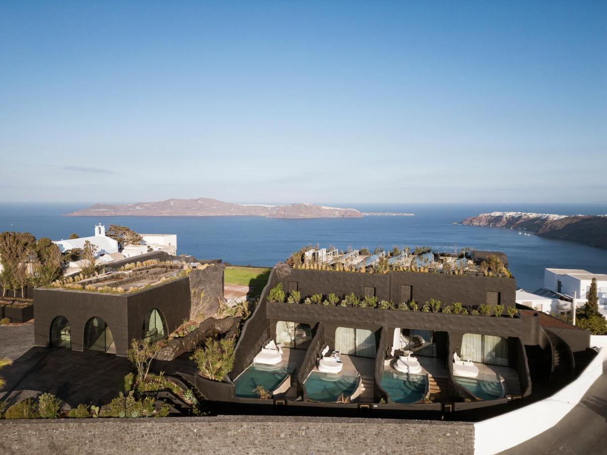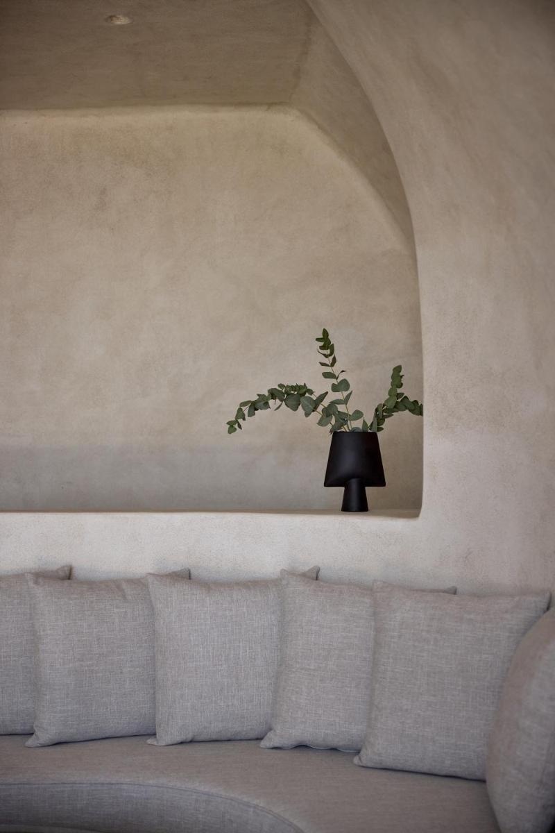Die Suiten bieten private Höhlenpools, große Panoramafenster mit Blick auf die Caldera, Naturstein-Details, organische Materialien, hochwertige Betten, Regenduschen und großzügige Räume für maximale Privatsphäre.